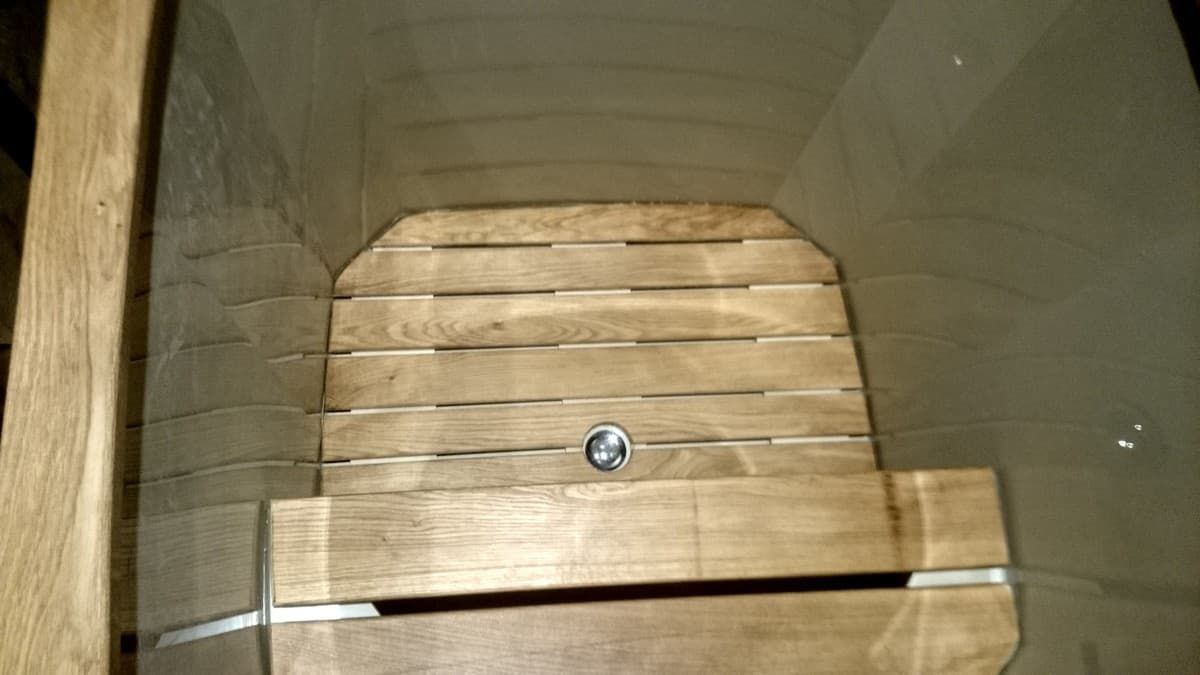 CITYWOOD — изготавливается из натурального дерева без полимерного покрытия, при этом не подвержены рассыханию и не текут. Купель «CITYWOOD» данная модель собрана по технологии палубной укладки. Фирменная разработка .Суть разработки заключается в том, что между наборными досками(далее –клепки) укладывается клей- герметик (см.фото),который блокирует выход воды наружу при рассыхании .