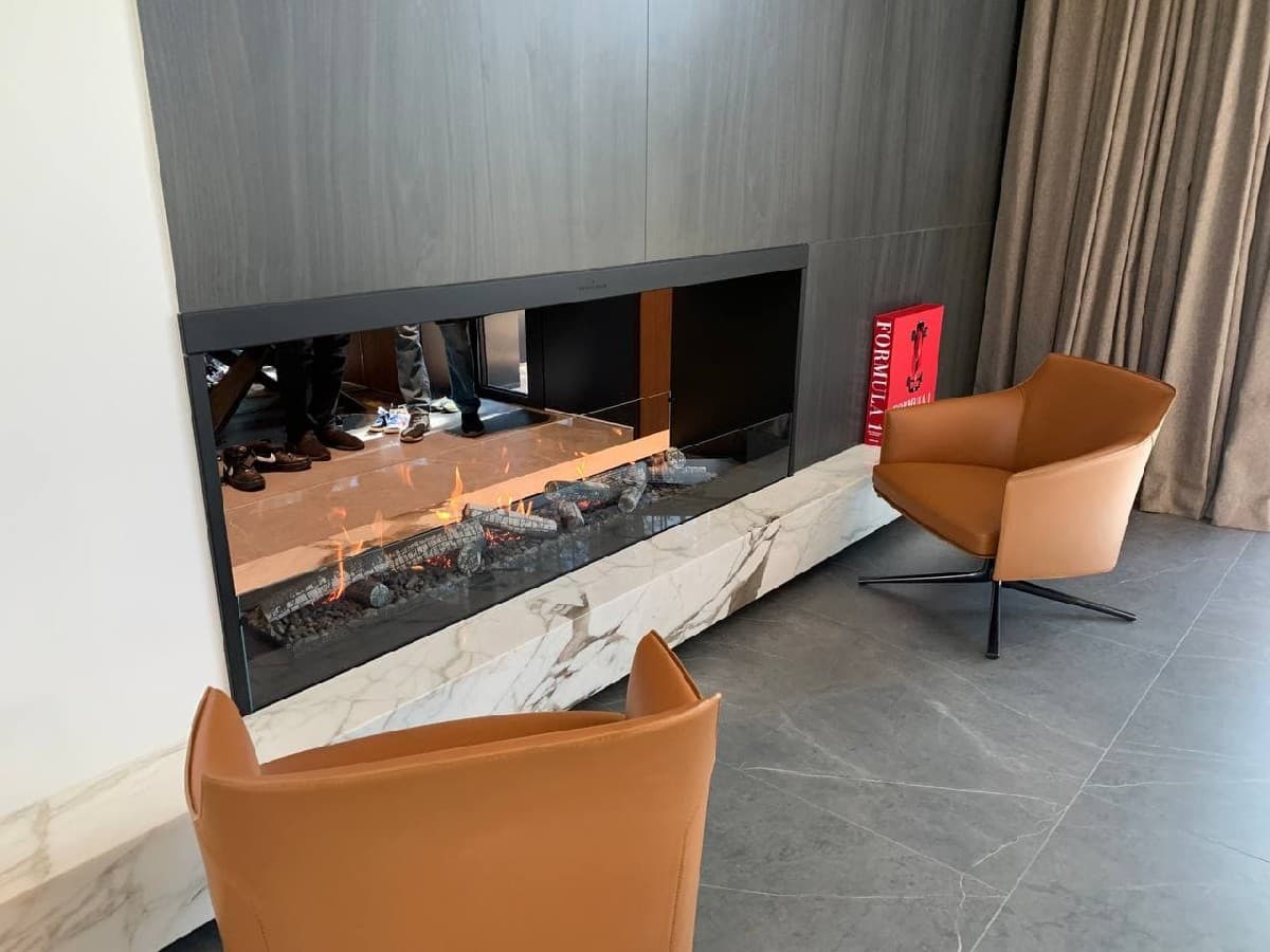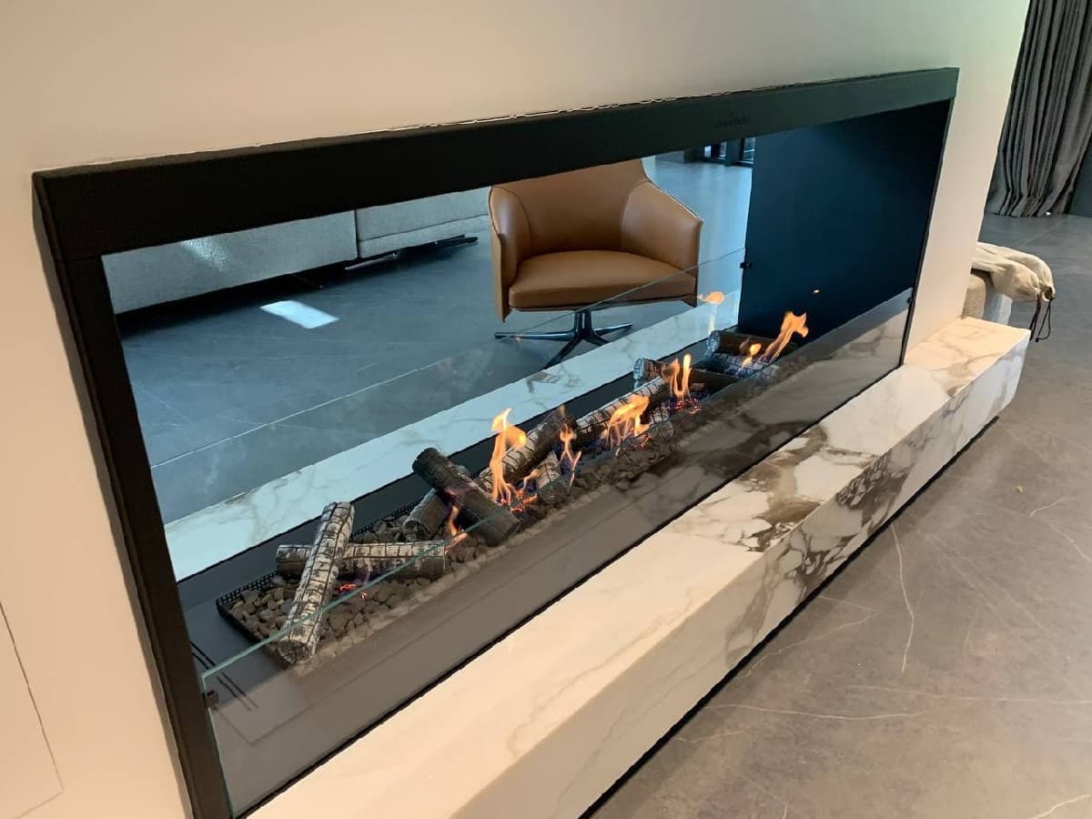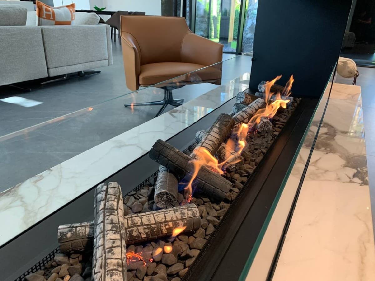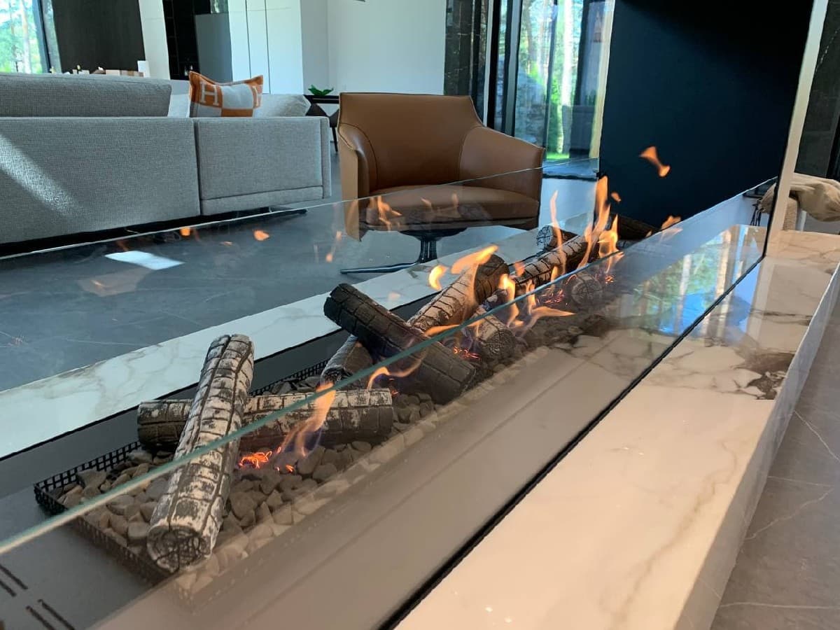 Автоматический биокамин Chalet с объёмным горением пламени 950 (SappFire) в интерьере: