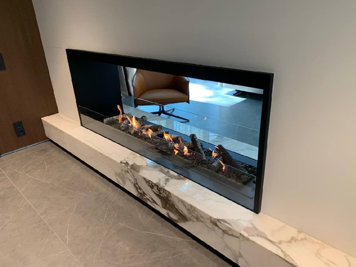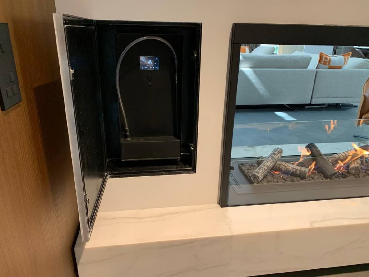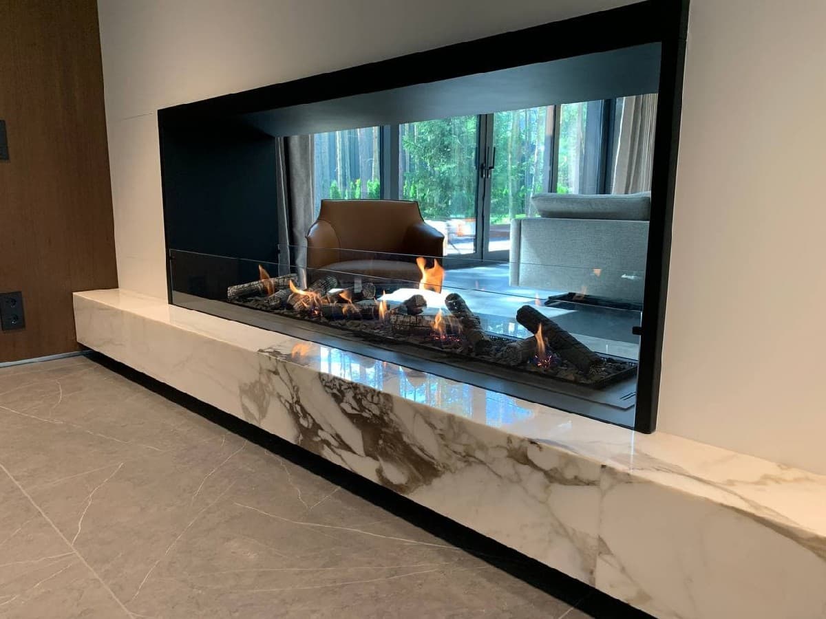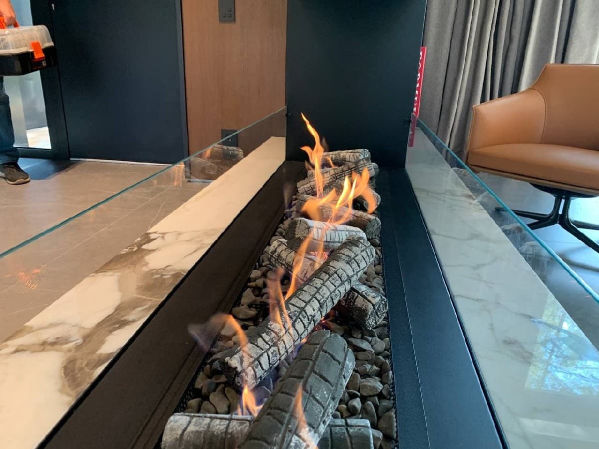 Автоматический биокамин Chalet с объёмным горением пламени 950 (SappFire) в интерьере: