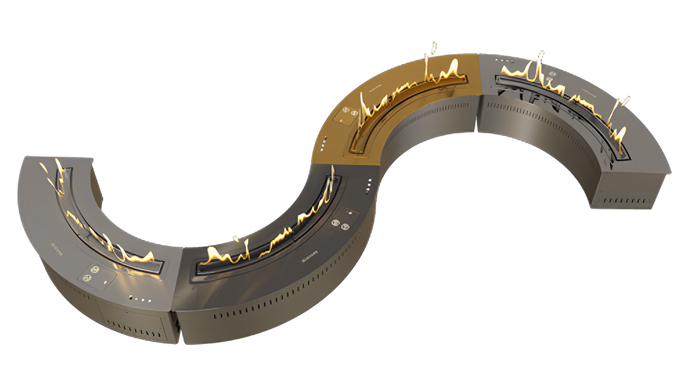 Удобная «секционность» модели позволяет собрать и замкнутый круг, и половину круга, или даже сложные элементы. Возможность соединения 15 топок с синхронным управлением позволит реализовать любой необычный проект.