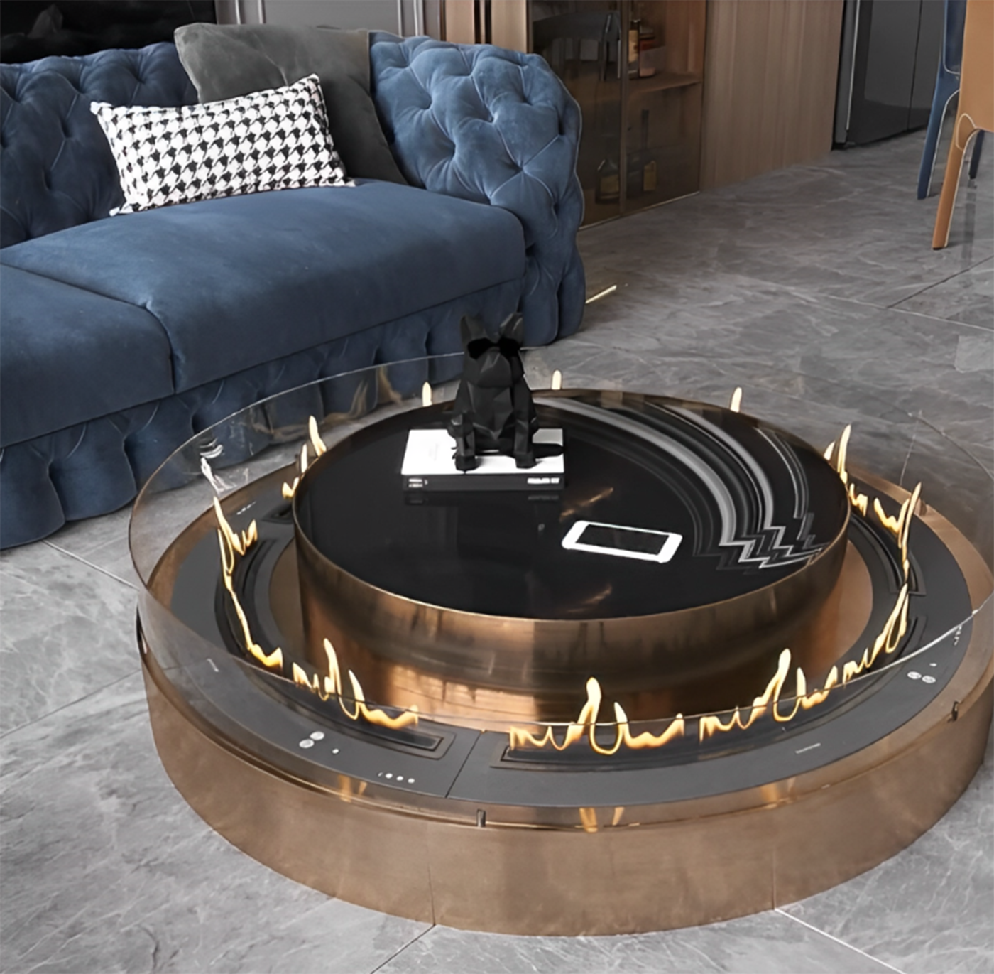 Встроенные баки увеличенного размера позволяют не отвлекаться на частое обслуживание камина. Но если все же пора, то уникальная запатентованная система автоматической заправки сделает все за вас. И больше никаких проливов топлива. Топливный бак может быть в размерах от 20 до 200 литров.