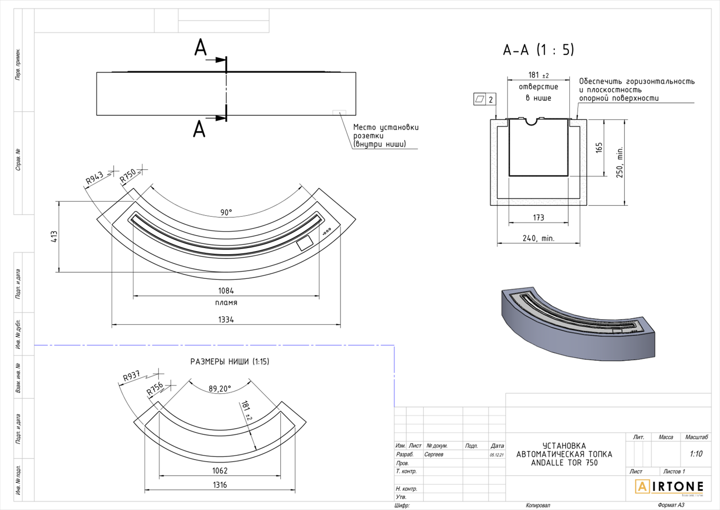 Видео Биокамин Airtone Andalle RADIAL 750