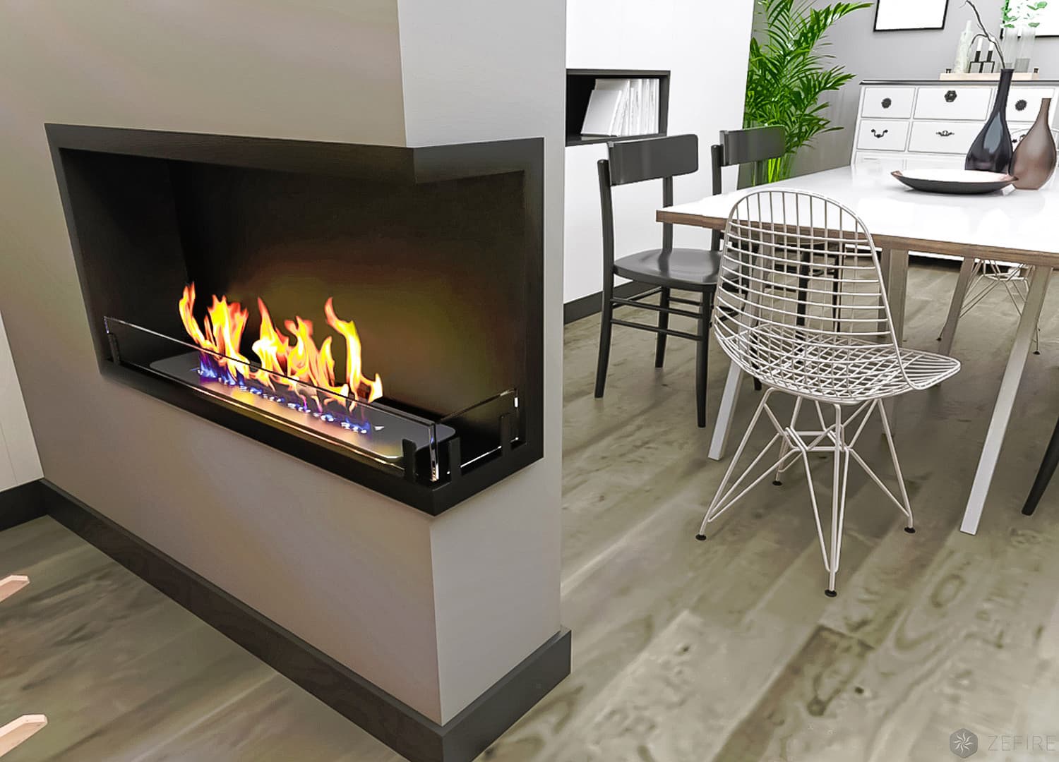 Биокамин Contour угловой 900 правый (ESTETIC FLAME) от производителя Zefire