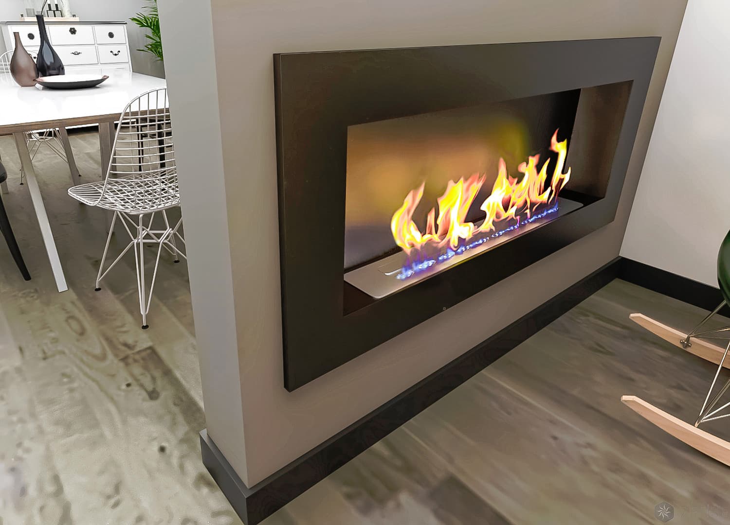 По способу установки биокамин Etude 1500 настенный и встраиваемый. Это значит, что его можно просто повесить на вертикальную поверхность с помощью дюбель-гвоздей или шурупов, как картину. Или встроить в нишу в перегородке, коробе из гипсокартона или мебели из МДФ. В последнем случае очагу потребуется несложная теплоизоляция, например, с помощью минеральной ваты и фольги.