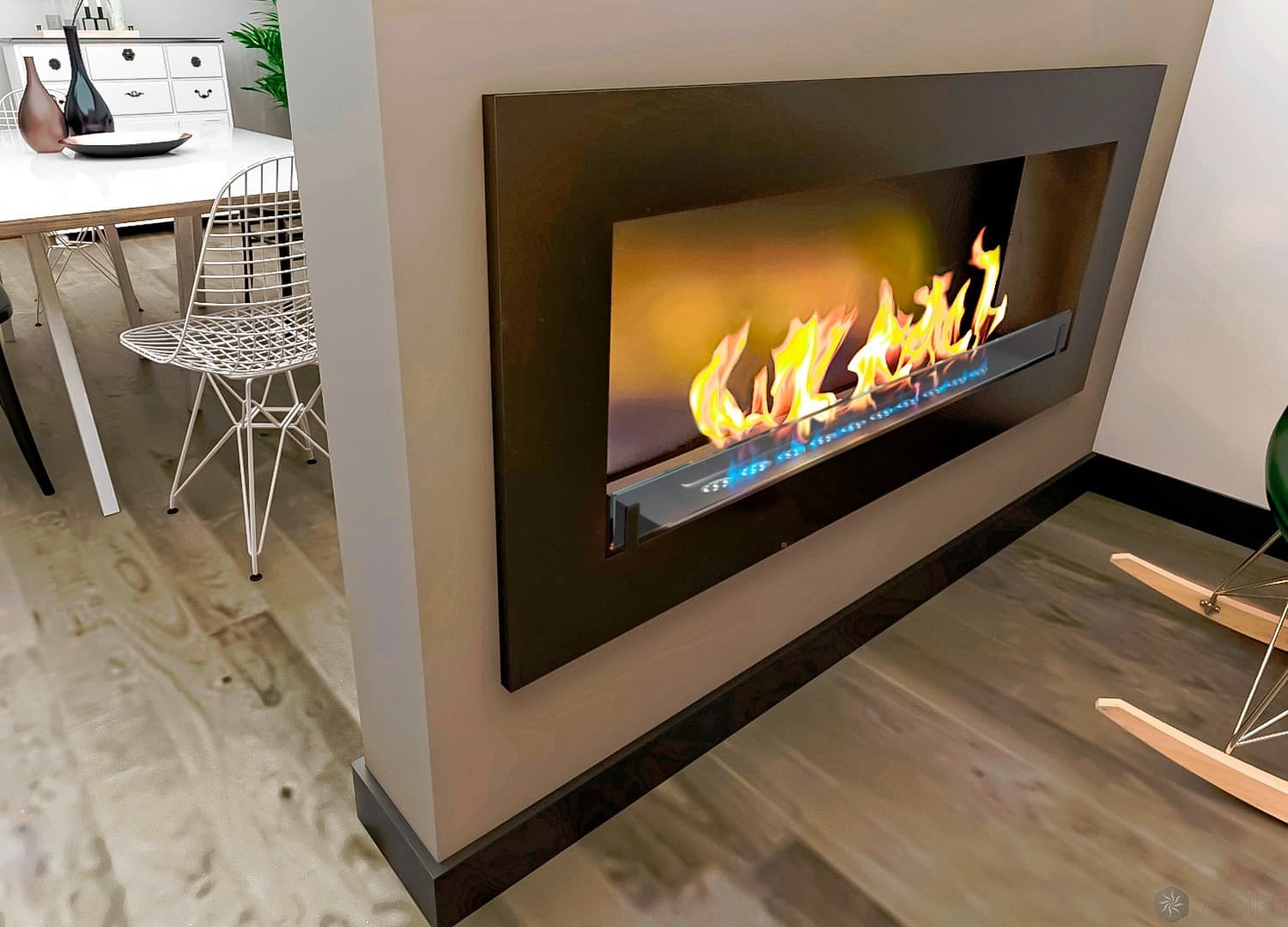По способу установки биокамин Etude 1500 настенный и встраиваемый. Это значит, что его можно просто повесить на вертикальную поверхность с помощью дюбель-гвоздей или шурупов, как картину. Или встроить в нишу в перегородке, коробе из гипсокартона или мебели из МДФ. В последнем случае очагу потребуется несложная теплоизоляция, например, с помощью минеральной ваты и фольги.