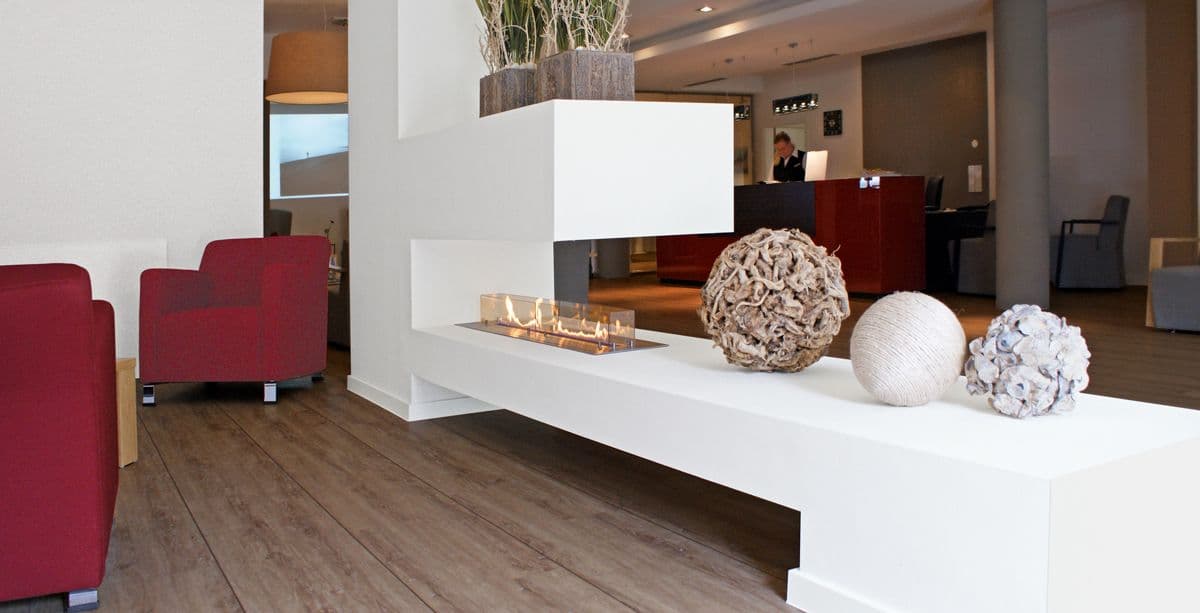 Биокамин Spartherm Quadra inside 2SL (нержавеющая сталь) в интерьере: