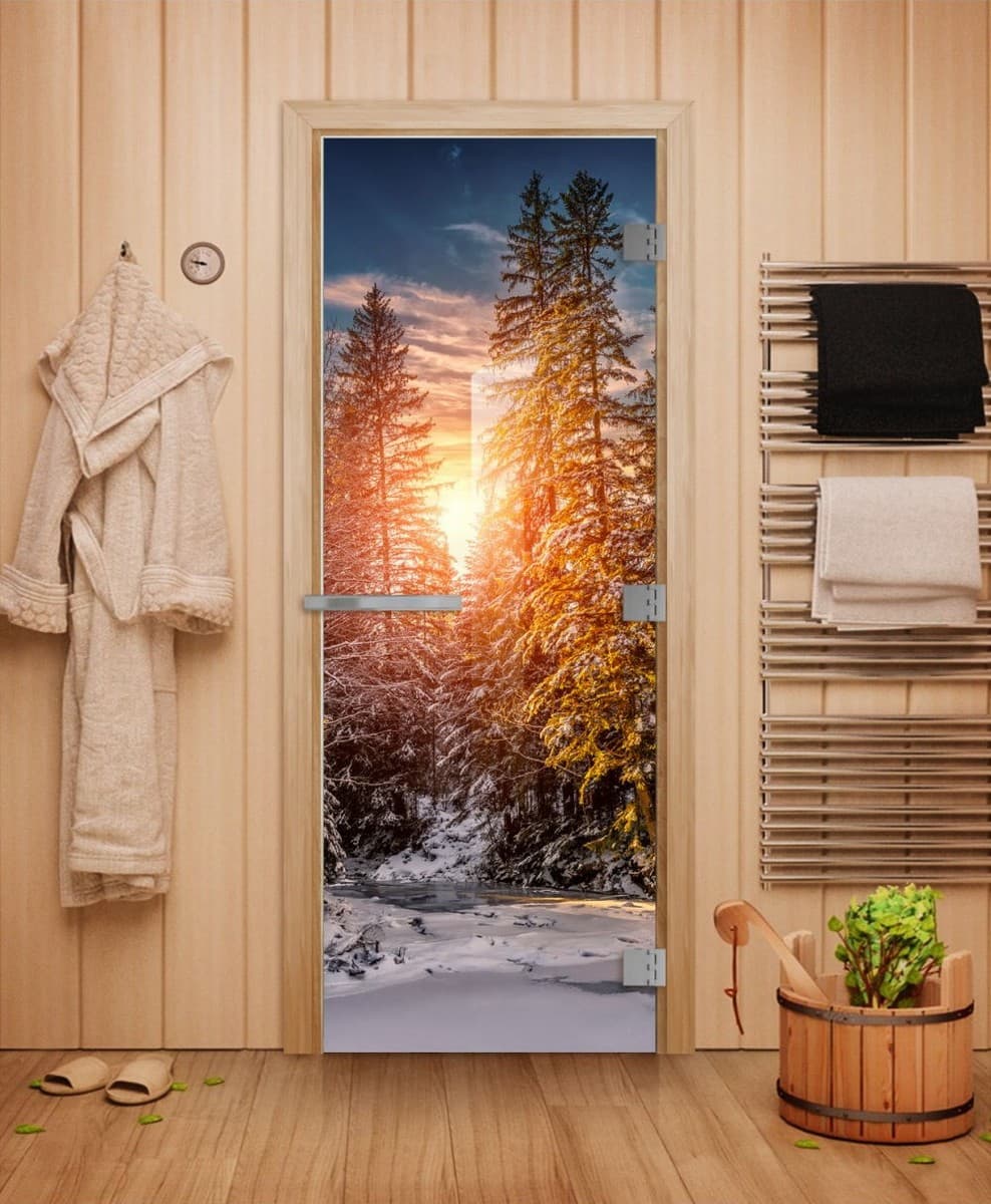 Стеклянная дверь для сауны Doorwood Эталон с Фотопечатью имеет привлекательный внешний вид, который украсит любой интерьер бани, купить ее можно в Минске с доставкой.