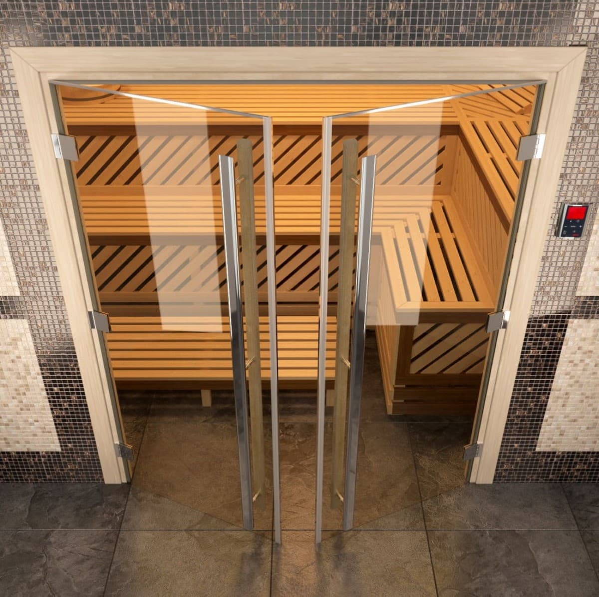 Стеклянная дверь для сауны Doorwood Престиж Двойная имеет привлекательный внешний вид, который украсит любой интерьер бани, купить ее можно в Минске с доставкой.