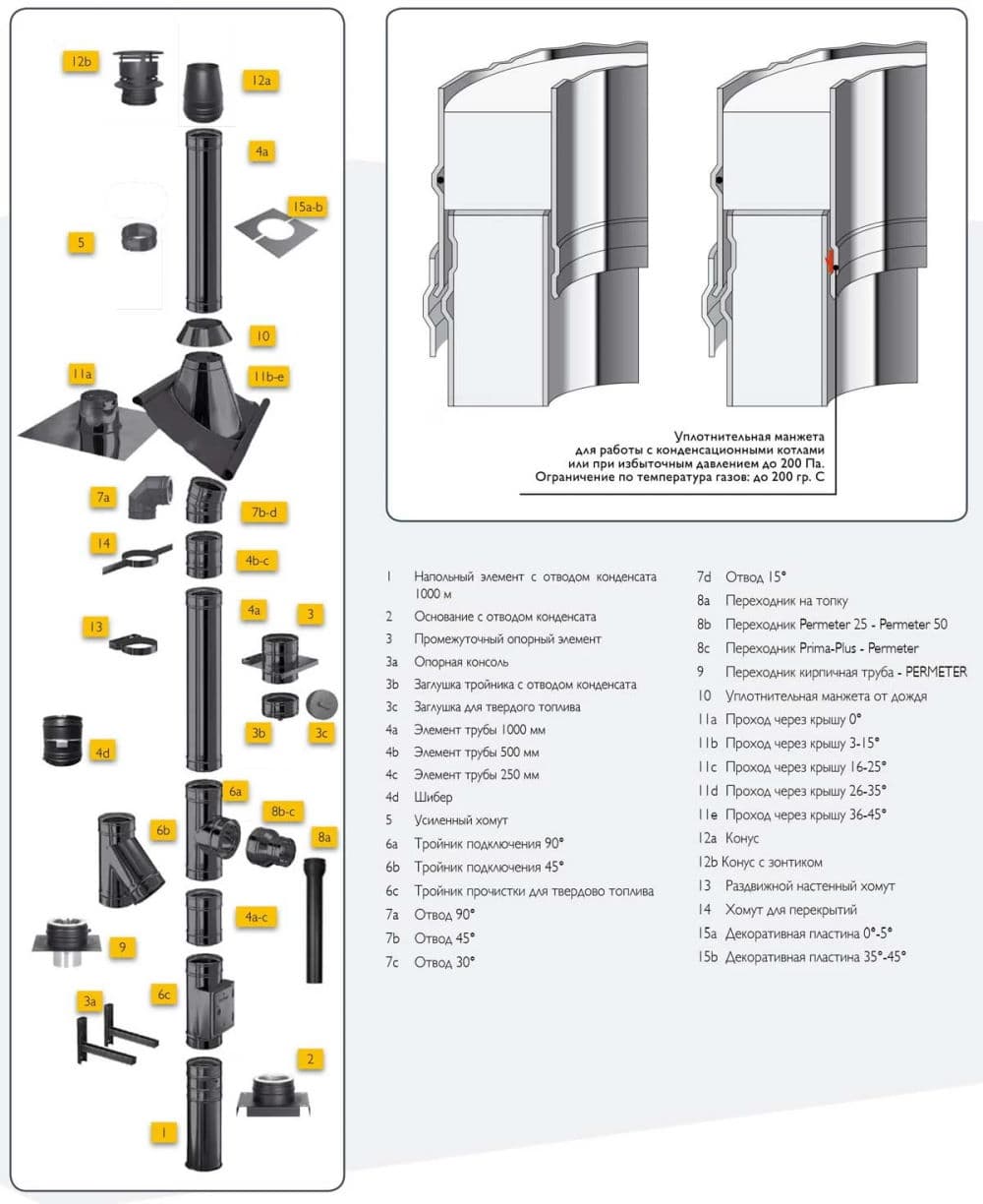 Черные дымоходы изготавливаются из низколегированной стали высокой прочности, толщиной 2 мм и выдерживают максимальную температуру до 1000°C.