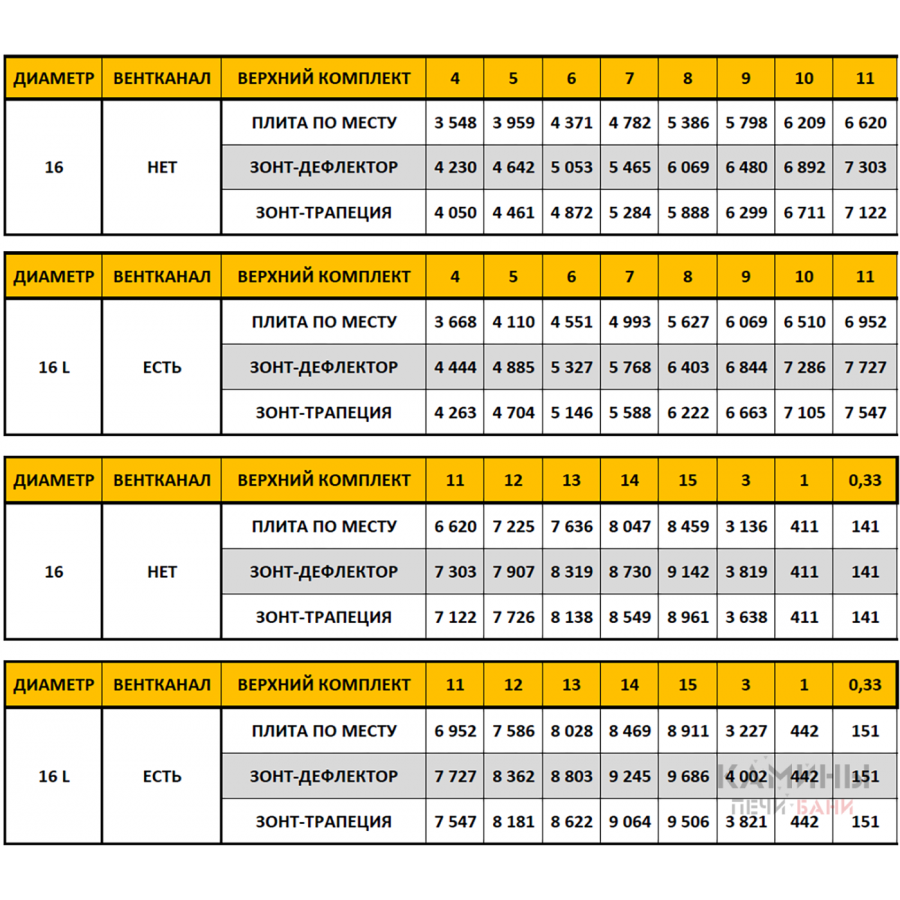 Прайс-лист на комплект системы ISOTOR 16 диаметра: