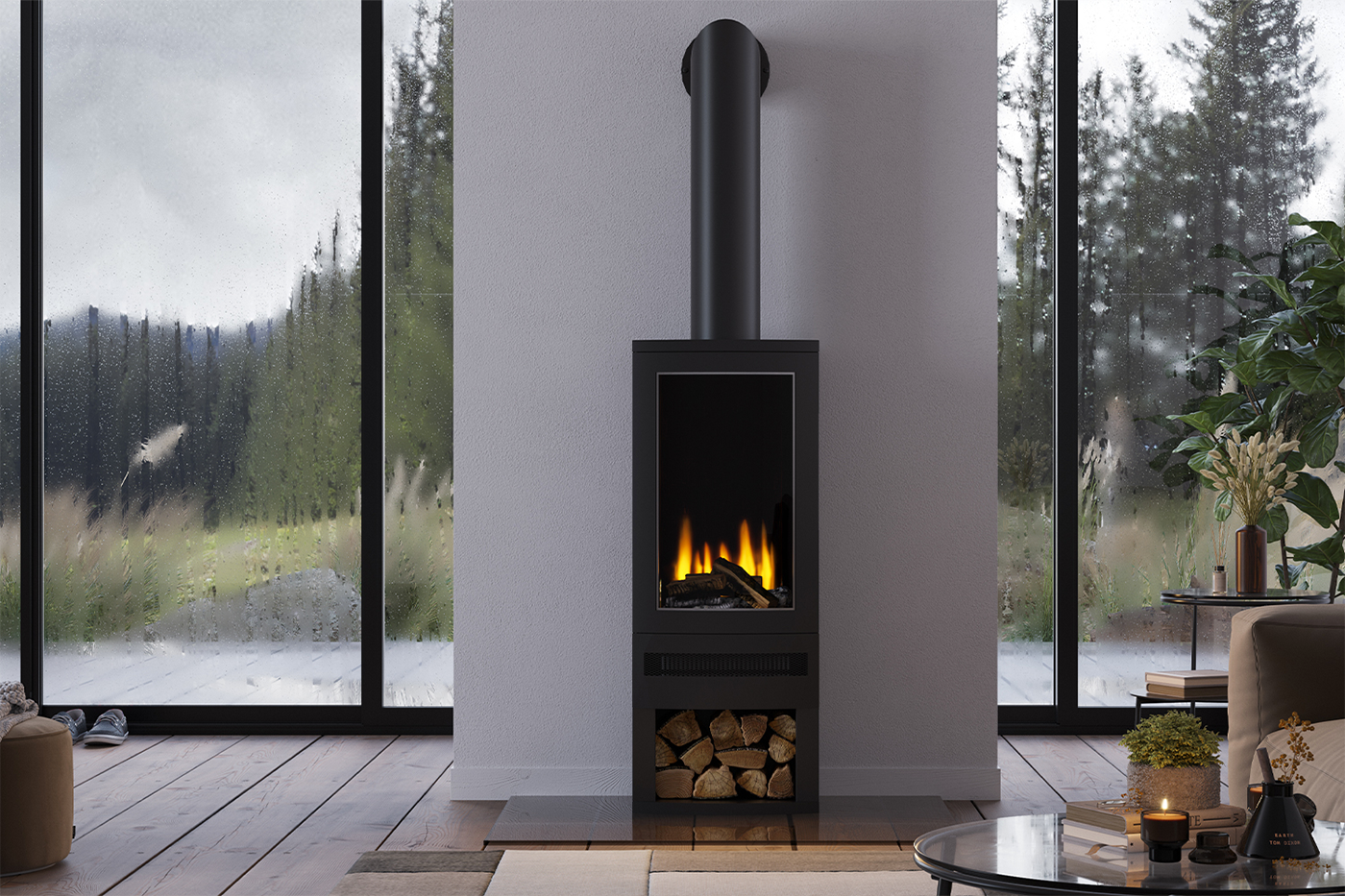 Модель Bramshaw можно приобрести в двух модификациях: со съемной дровницей с натуральными поленьями или без дровницы.