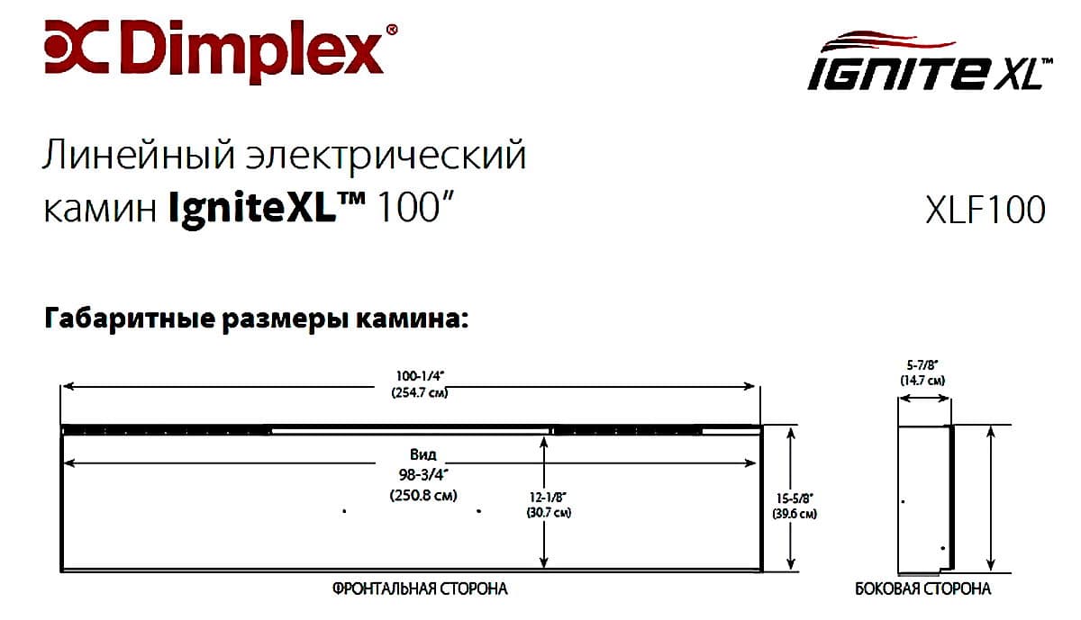 Линейный электрокамин Dimplex IGNITE XLF100 (Ингнайт 100) с потрясающим эффектом пламени и мощной системой нагрева.