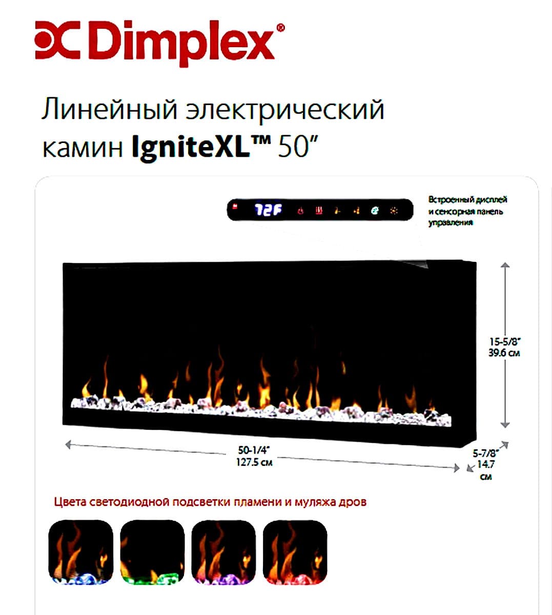 Линейный электрокамин Dimplex IGNITE XLF50 (Ингнайт 50) с потрясающим эффектом пламени и мощной системой нагрева.