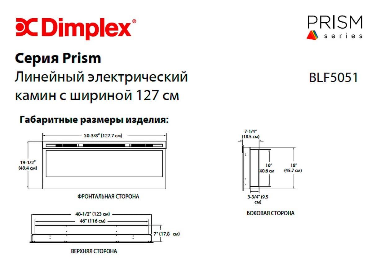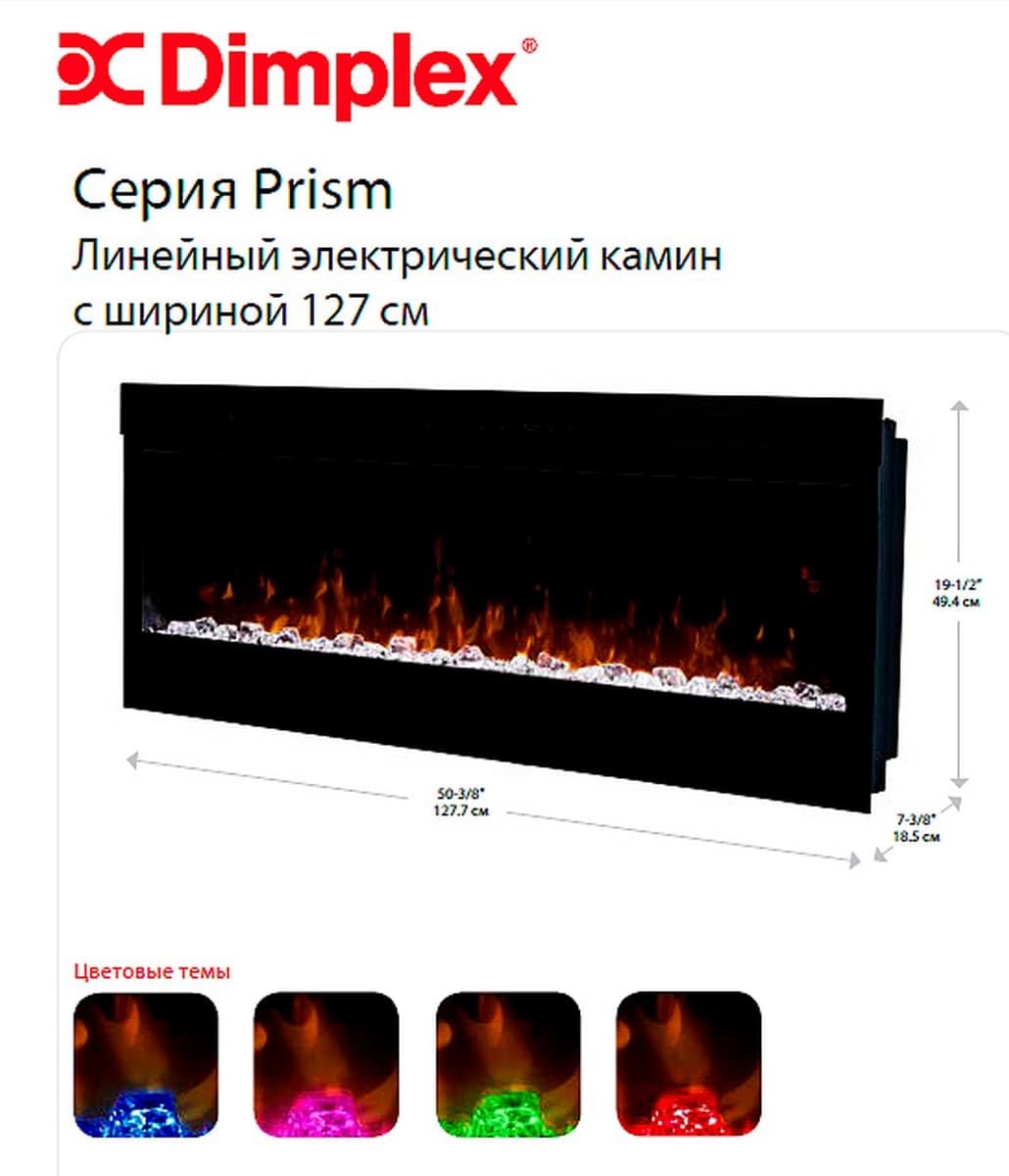 Линейный электрокамин Dimplex PRISM 50 (Призм 50) с эффектом реалистичных язычков пламени, тлеющих угольков и пеплом.