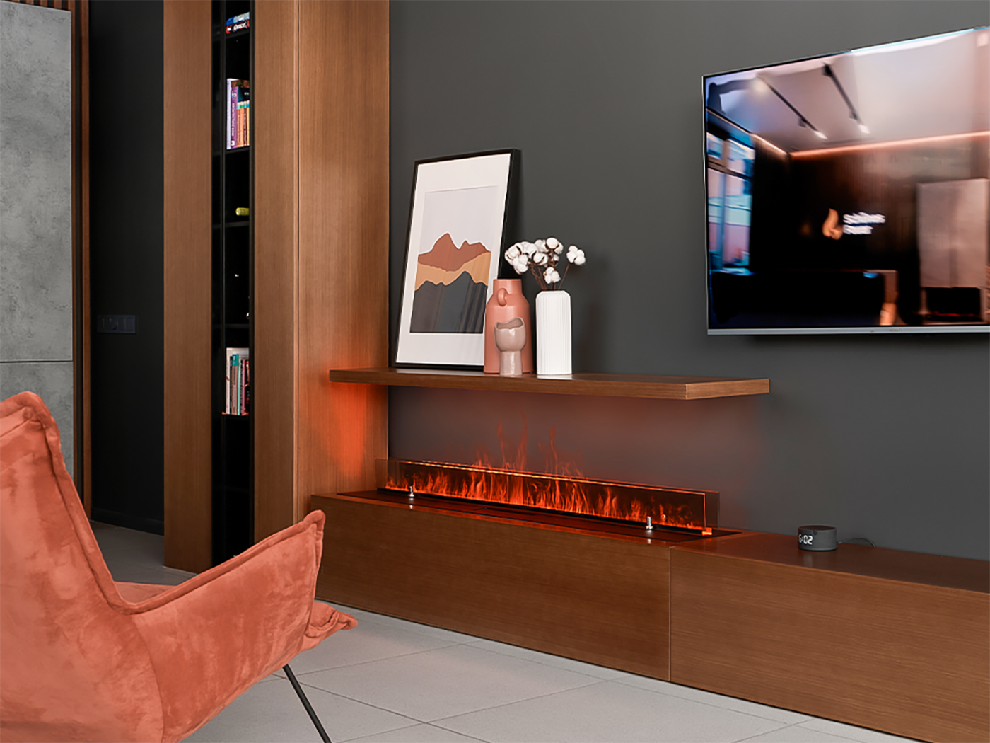 Очаг может быть встроен в нишу в стене, установлен в виде островной конструкции, а также смонтирован в мебельные элементы.