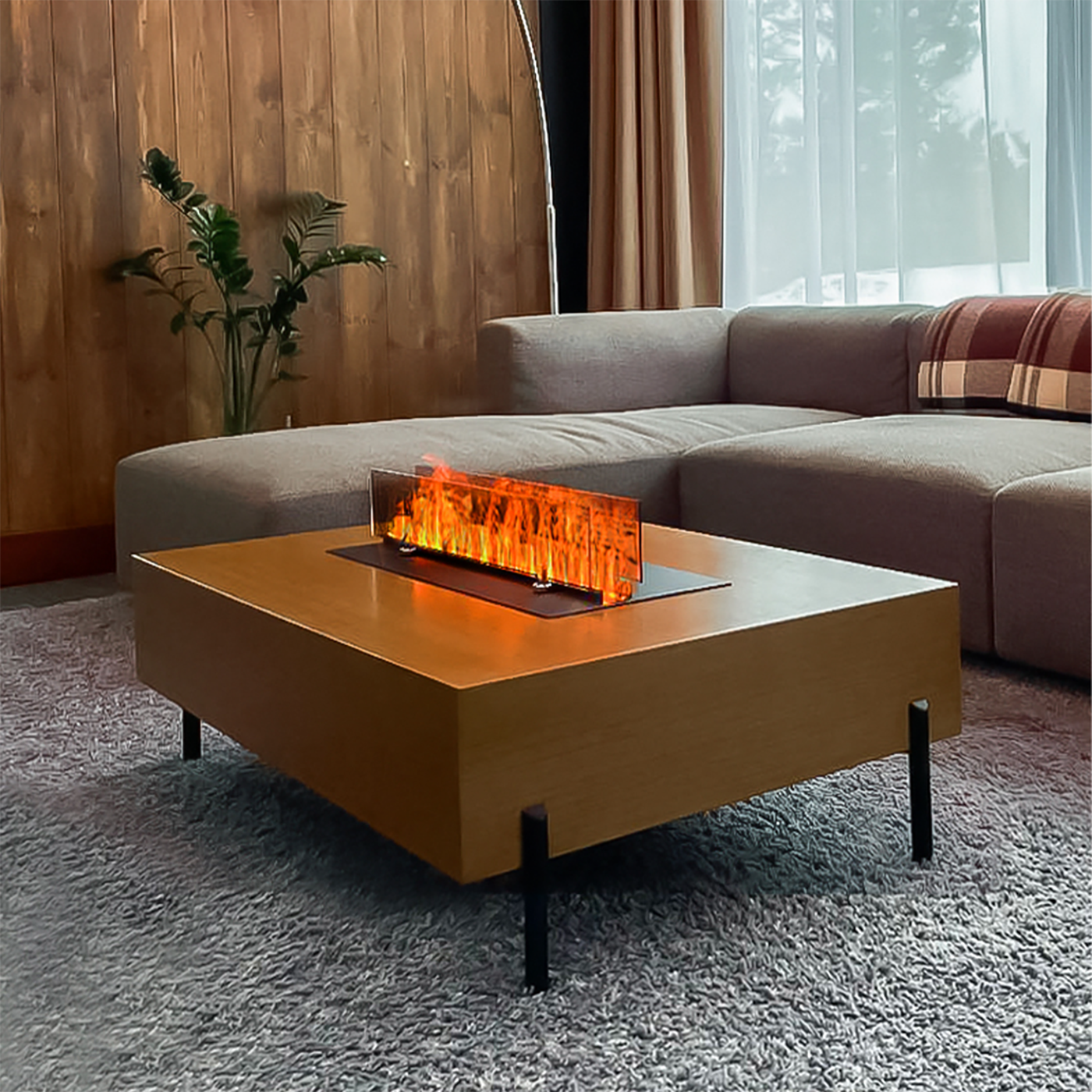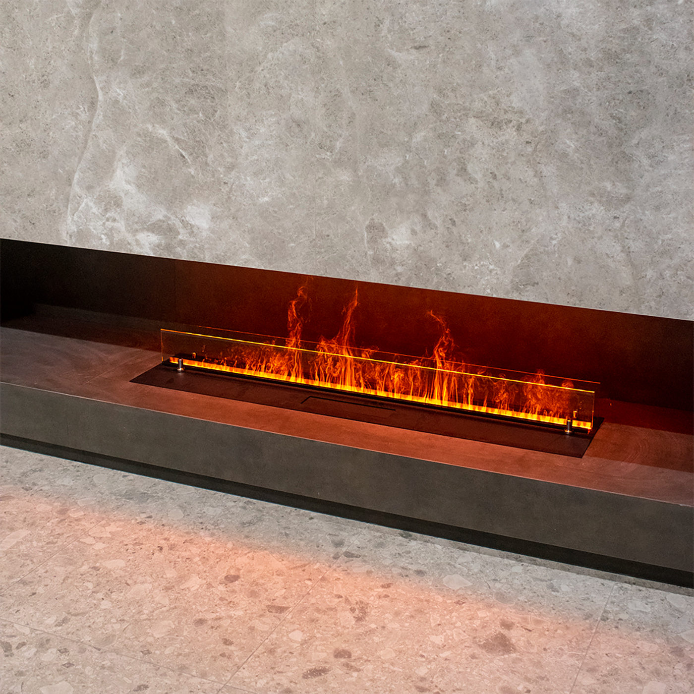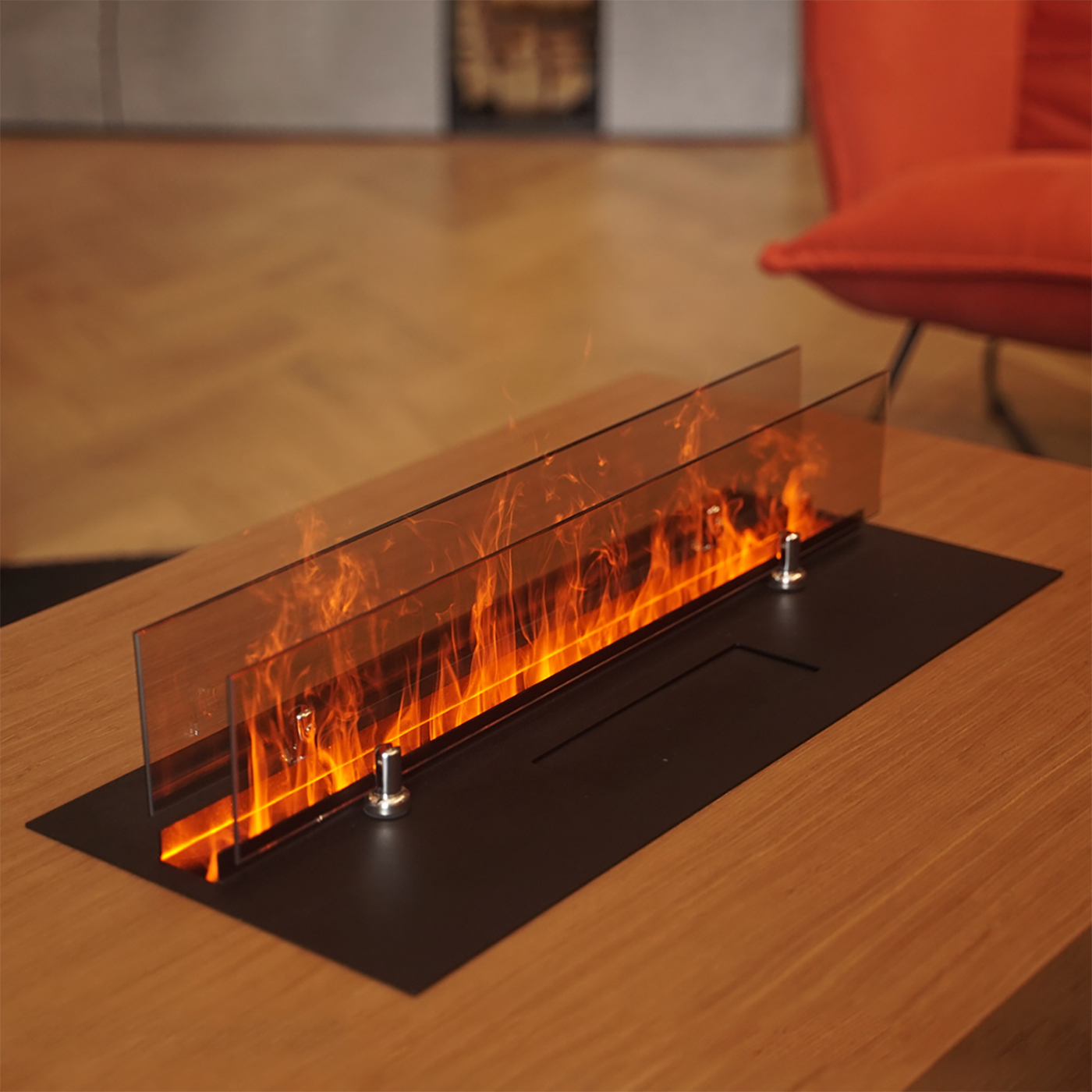 Реалистичное пламя образуется при проецировании лучей на пару. Такая имитация огня имеет довольно высокую степень схожести с реальным пламенем и является полностью безопасной для окружающих, а испаряющаяся вода, повышает влажность воздуха, создает комфортный микроклимат.