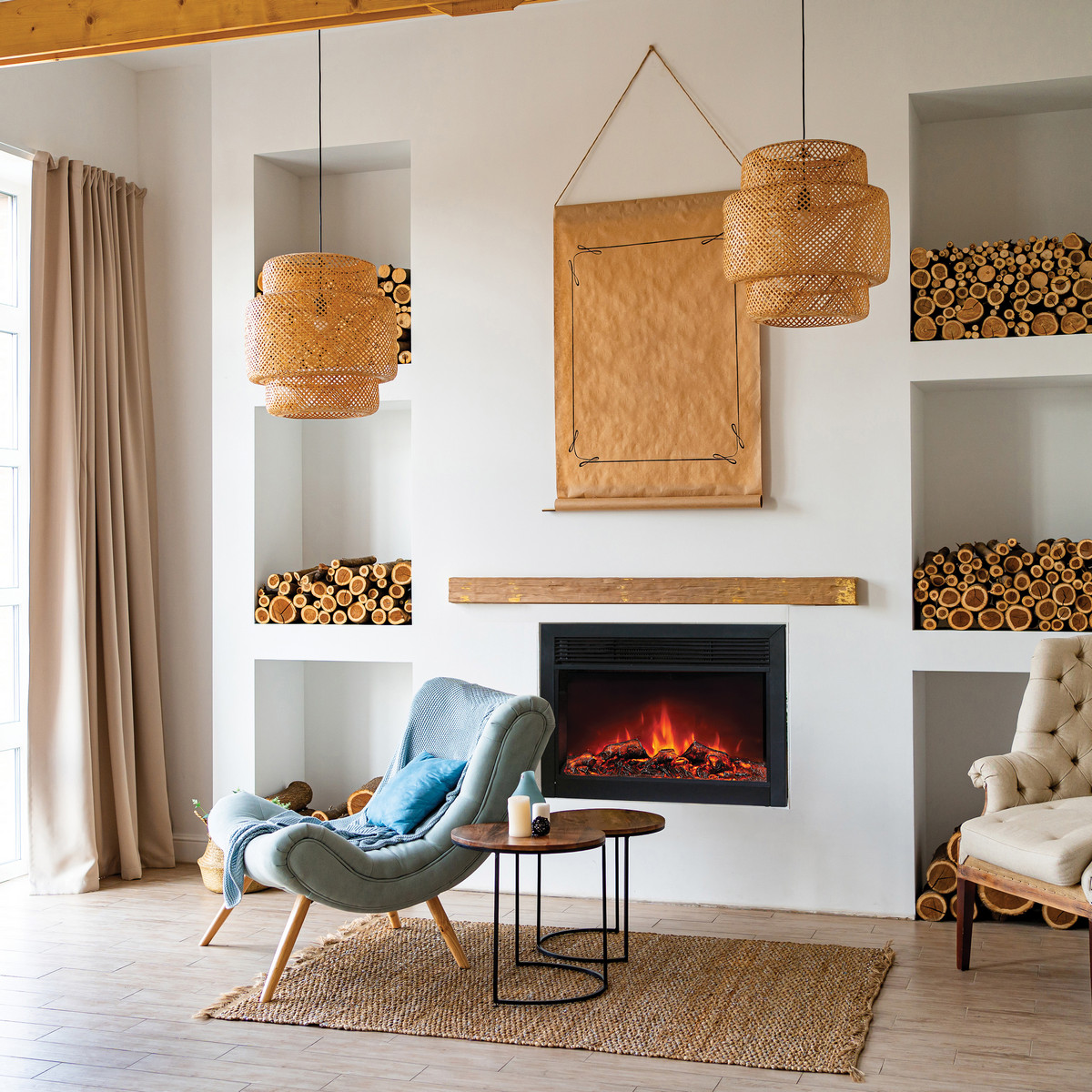 Двухуровневый тепловентилятор обогреет за полчаса любое помещение - спальню, кухню, его можно просто поставить на пол или встроить в каминное обрамление, в нишу или в мебель - есть датчик защиты от перегрева. Камин используют в любую погоду зимой, осенью или весной, в квартире или на даче. Летом можно не включать обогрев - проекционная технология пламени имитирующая настоящий огонь работает в независимом режиме.