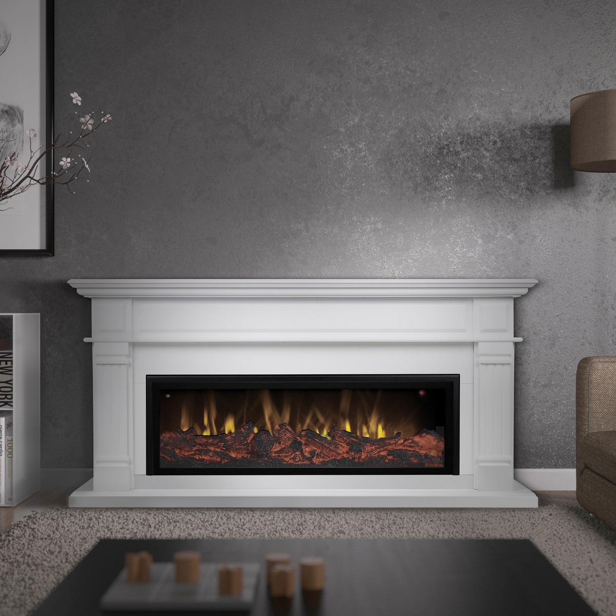 Электрический камин выполнен в универсальном стиле для различных дизайнерских решений, из современных, экологически чистых материалов. Небольшая глубина позволяет устанавливать камин в небольших помещениях.