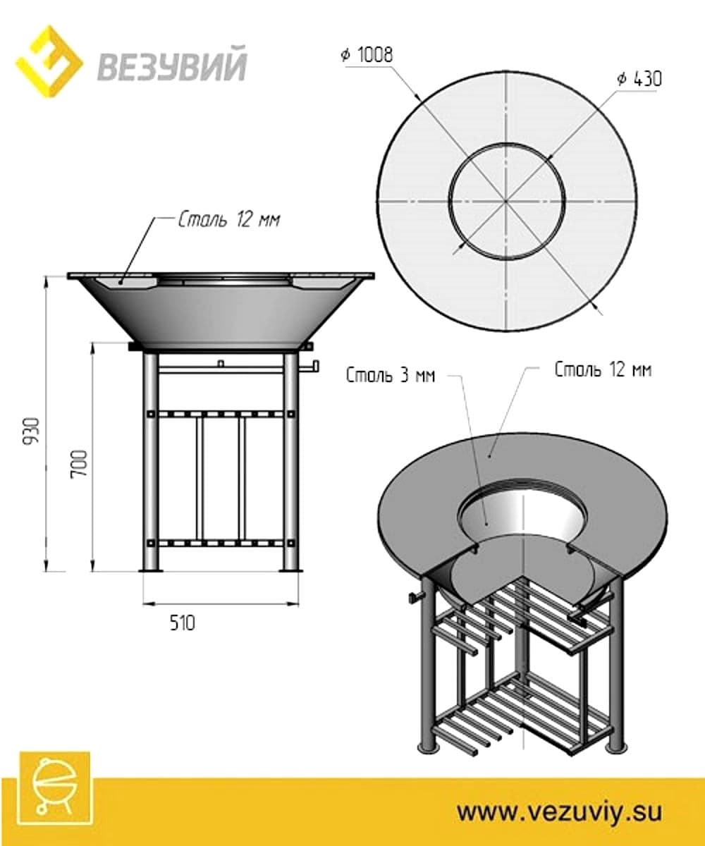 Чугунная чаша FANTASTIC GRILL Везувий Легенда Ø 1000 — инновационный Российский многофункциональный очаг.