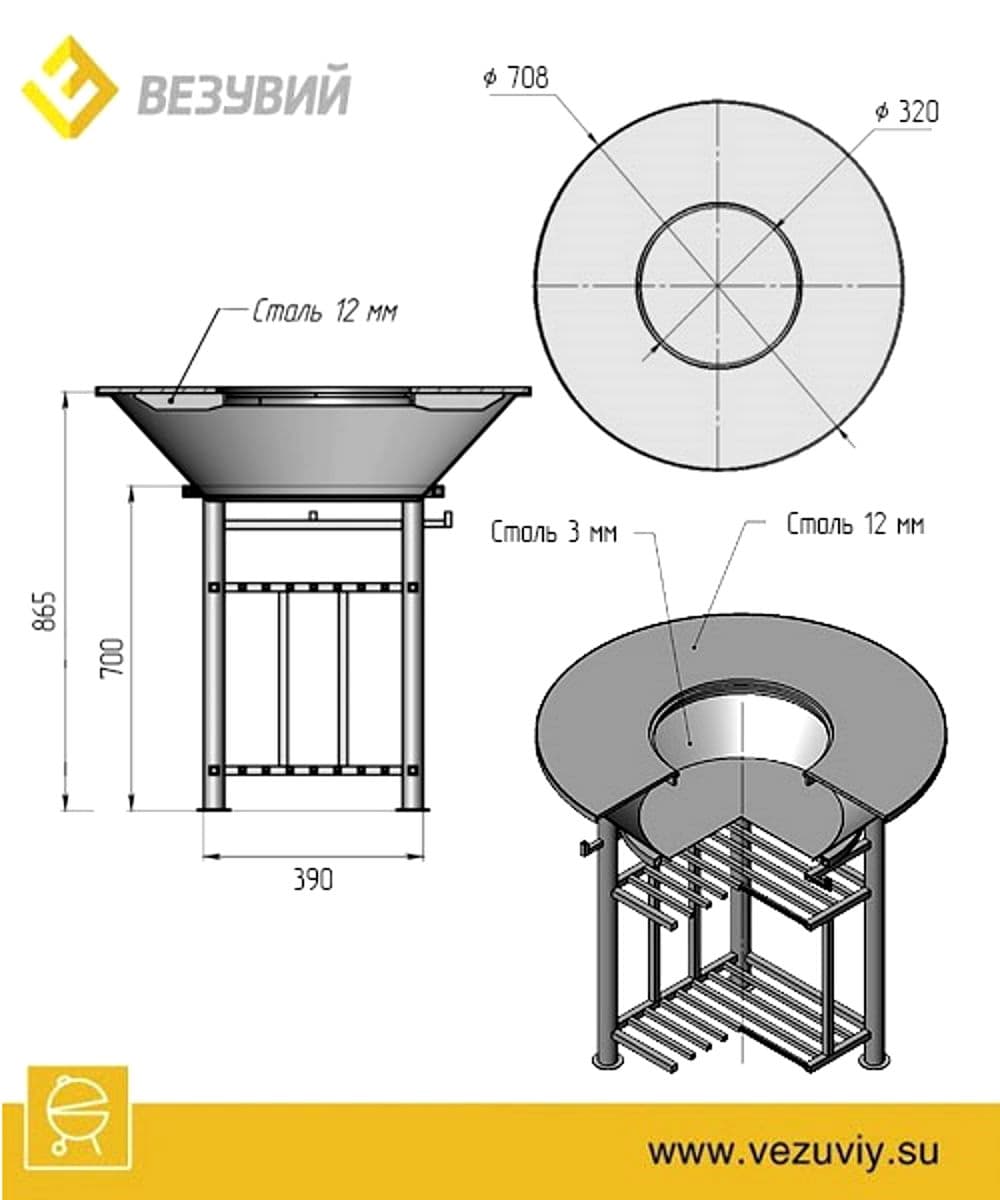 Fantastic Grill Везувий "Легенда" идеально подойдет для использования в загородном доме, на даче, охотничьих базах, домах отдыха и т. д. В комплекте Решетка чугунная круглая "СТЕЙК" Ø 314мм, крышка и подставка рассчитанная под казан.