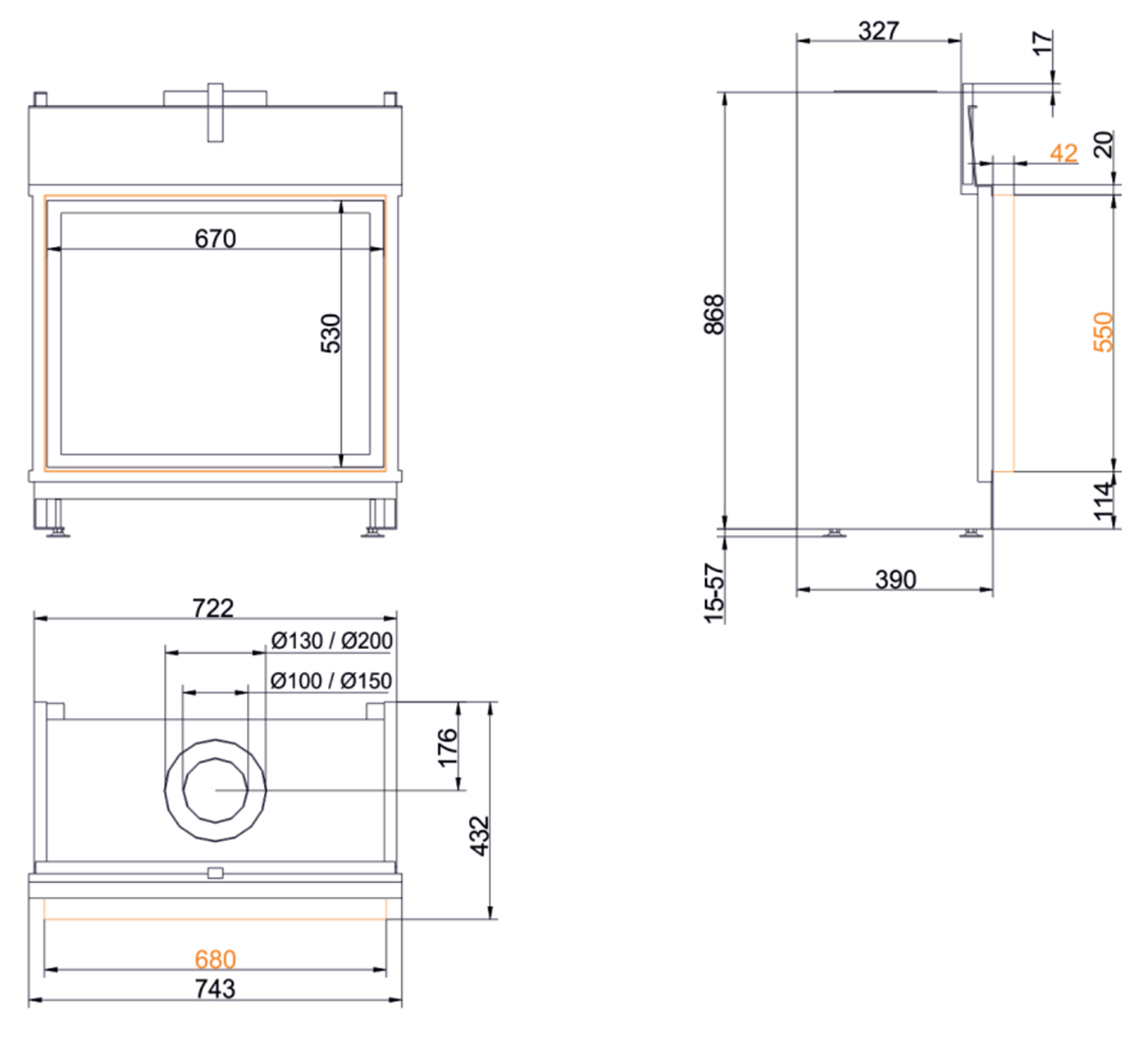 Чертеж газового камина flach 53/67