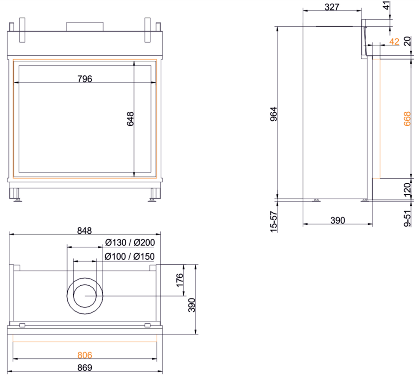 Чертеж газового камина flach 65/80