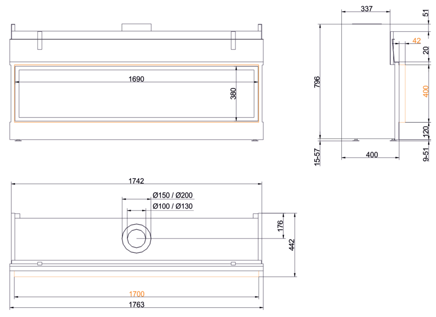 Газовый камин BRUNNER flach Architektur 38/170 обладает мощностью от 9,2 до 11 кВт, что обеспечивает эффективный обогрев помещения. Размеры по стеклам двери 38 х 169 см, что позволяет ему гармонично вписаться в интерьер. Камера сгорания выполнена из черных стальных панелей, предлагается в двух вариантах: бесшовные стальные панели и стеклокерамические черные панели, что придает камину современный и элегантный вид.