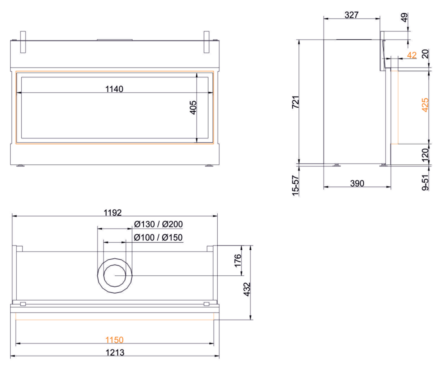 Чертеж газового камина flach Architektur 40/115