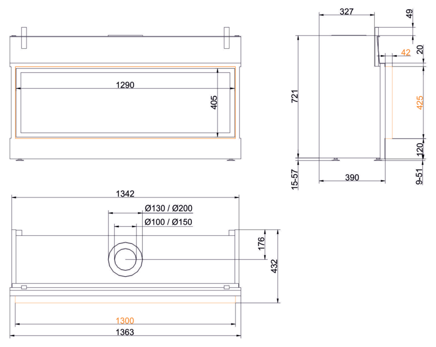 Газовый камин BRUNNER flach Architektur 40/130 обладает мощностью от 7,1 до 10,2 кВт, что обеспечивает эффективный обогрев помещения. Размеры по стеклам двери 41 х 129 см, что позволяет ему гармонично вписаться в интерьер. Камера сгорания выполнена из черных стальных панелей, предлагается в двух вариантах: бесшовные стальные панели и стеклокерамические черные панели, что придает камину современный и элегантный вид.