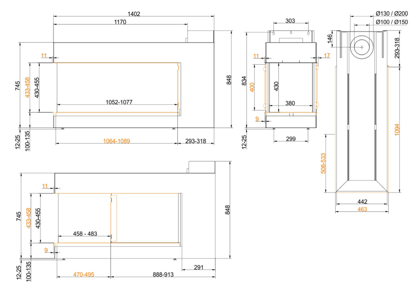 | Диаметр дымового патрубка | 130-200 мм |
