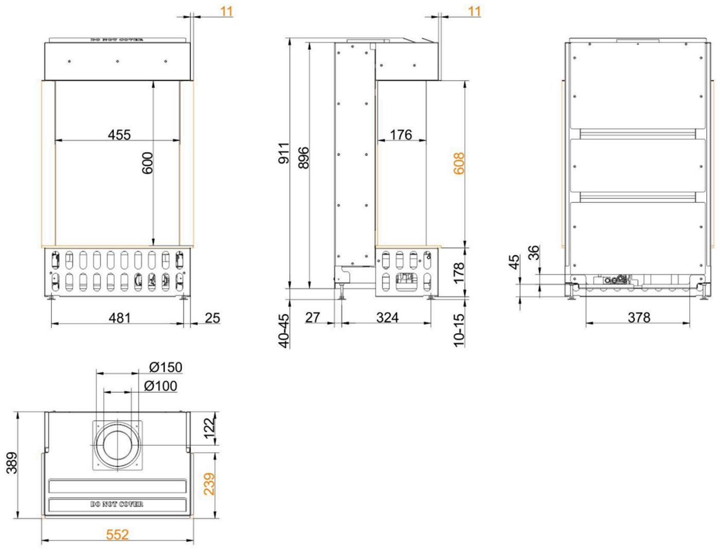 Чертеж газового камина Panorama 59/17/45/17