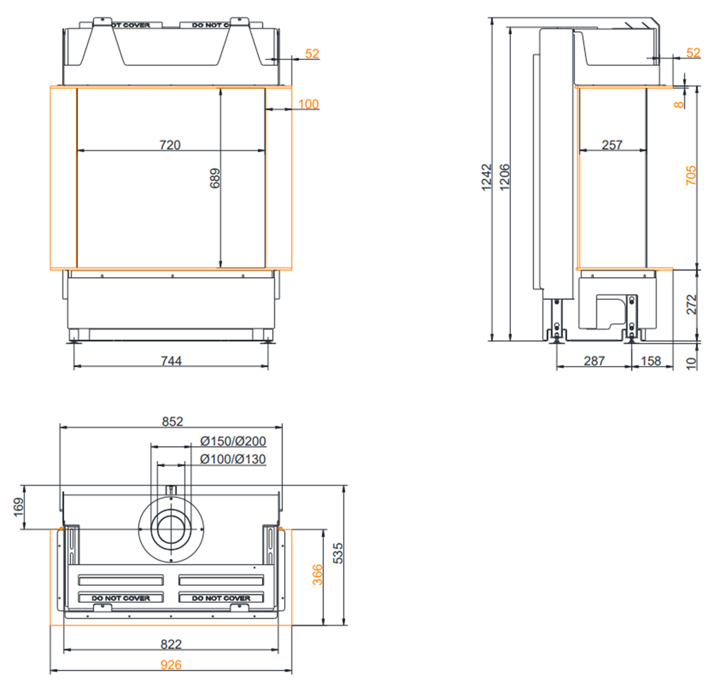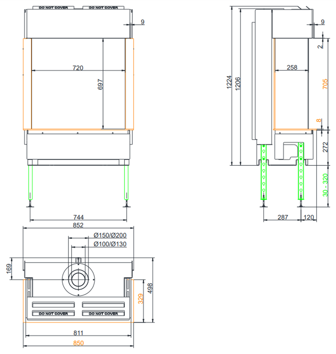 Чертеж газового камина Panorama BKG 70-25-70-25