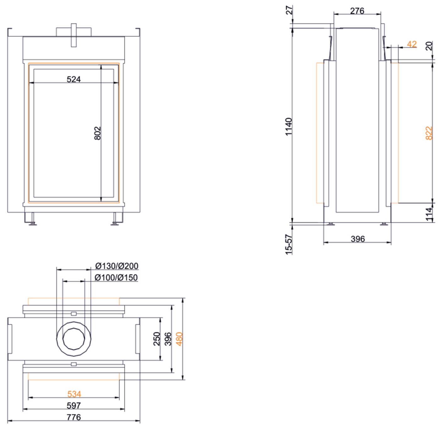| Диаметр дымового патрубка | 130-200 мм |
