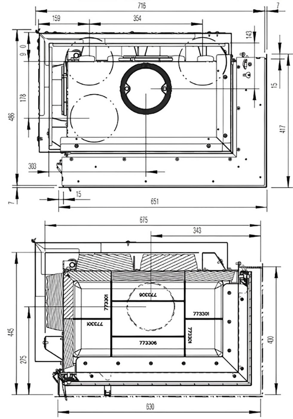 Опционально вы можете выбрать темную футеровку камеры из керамотта с черным пигментом Carbon, создавая уникальный дизайн вашего интерьера. Эффект "выгорания сажи" придает поверхности черных керамоттовых вставок особый шарм, оставляя их чистыми и элегантными. Также, имеется каминная топка 63x40x42 K 2.0 Left.