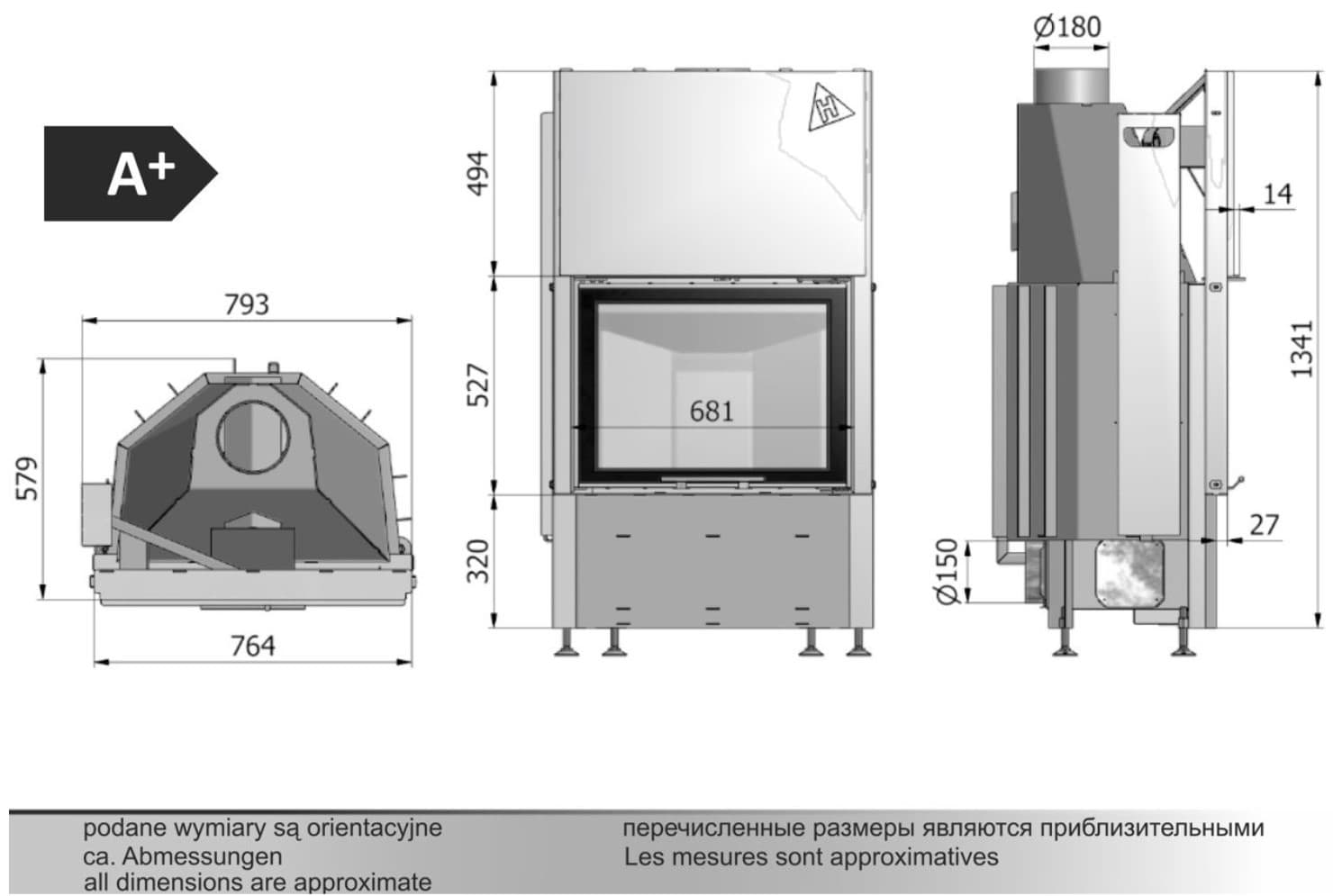 Каминная топка Hajduk Prisma 1VTh- это призматическая стальная топка с прямым остеклением, безрамочной дверцей и подъемным механизмом открытия.