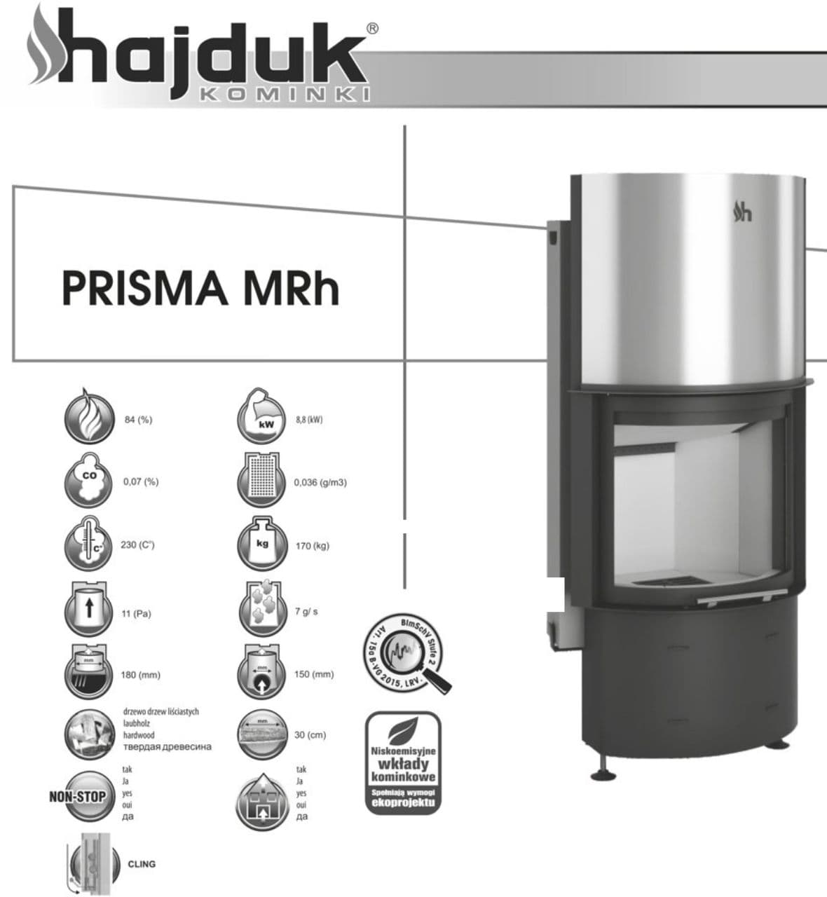Каминная топка Hajduk Prisma MRh - это призматическая стальная топка с полукруглым остеклением и открытием дверцы вверх.