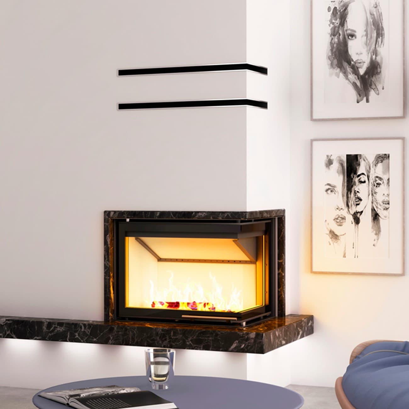 Каминная топка Hajduk Smart 2PXLTh - это стальная топка с безрамочной дверцей, угловым правым остеклением и подъемным механизмом открытия дверцы.