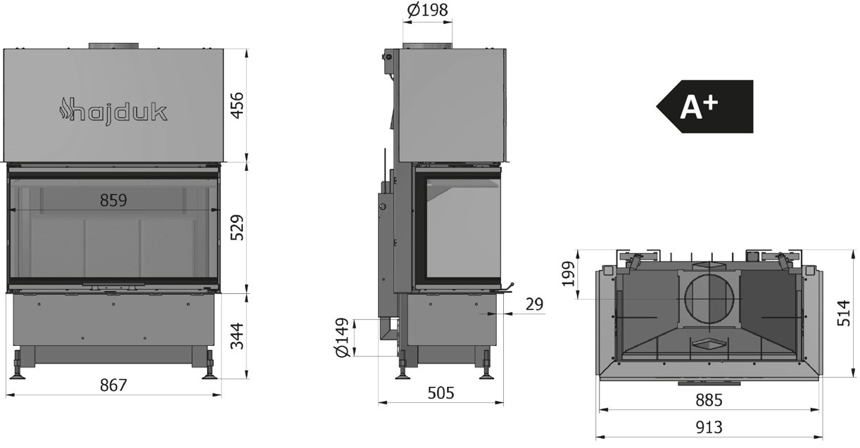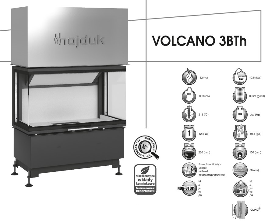 Предлагаем купить каминную топку Hajduk Volcano 3BTh в современном дизайне и новейшем техническом исполнении.