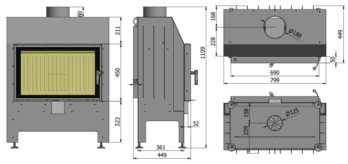 выход дымохода D-180 мм - совместим с большинством дымоходов