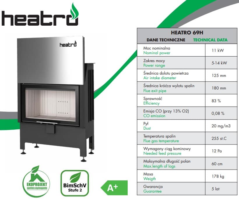 Каминная топка Heatro 69H black - популярная модель камина с компактными размерами, очень универсальна и впишется практически в любой интерьер