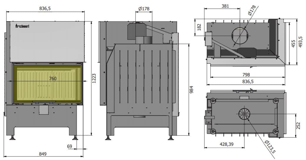 - регулируемые ножки - легкая сборка и выравнивание топки