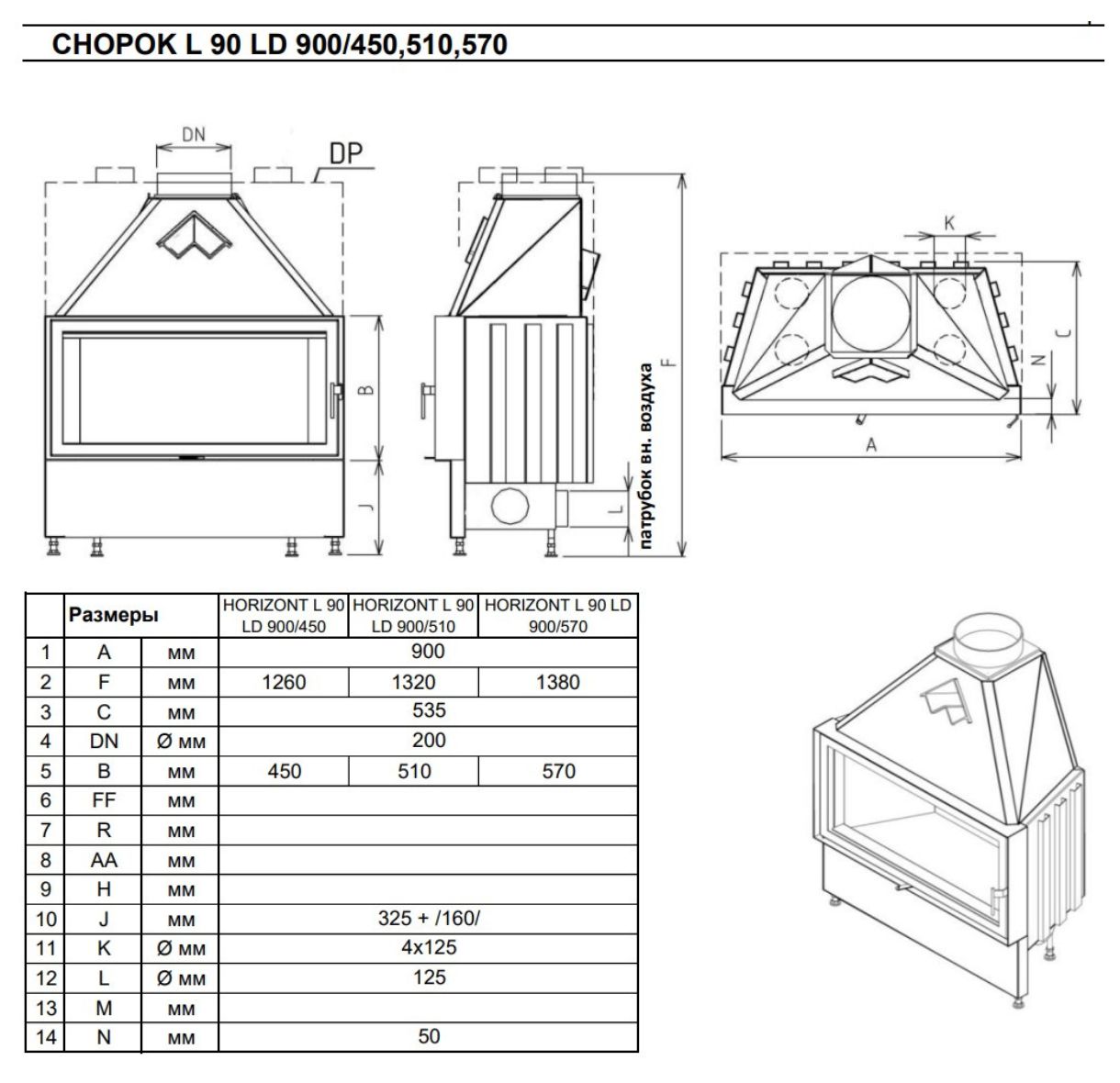 Каминная топка KOBOK Chopok L 90, LD 900×570 - каминная топка из высококачественной жаропрочной стали с прямым остеклением и открыванием дверцы в сторону.