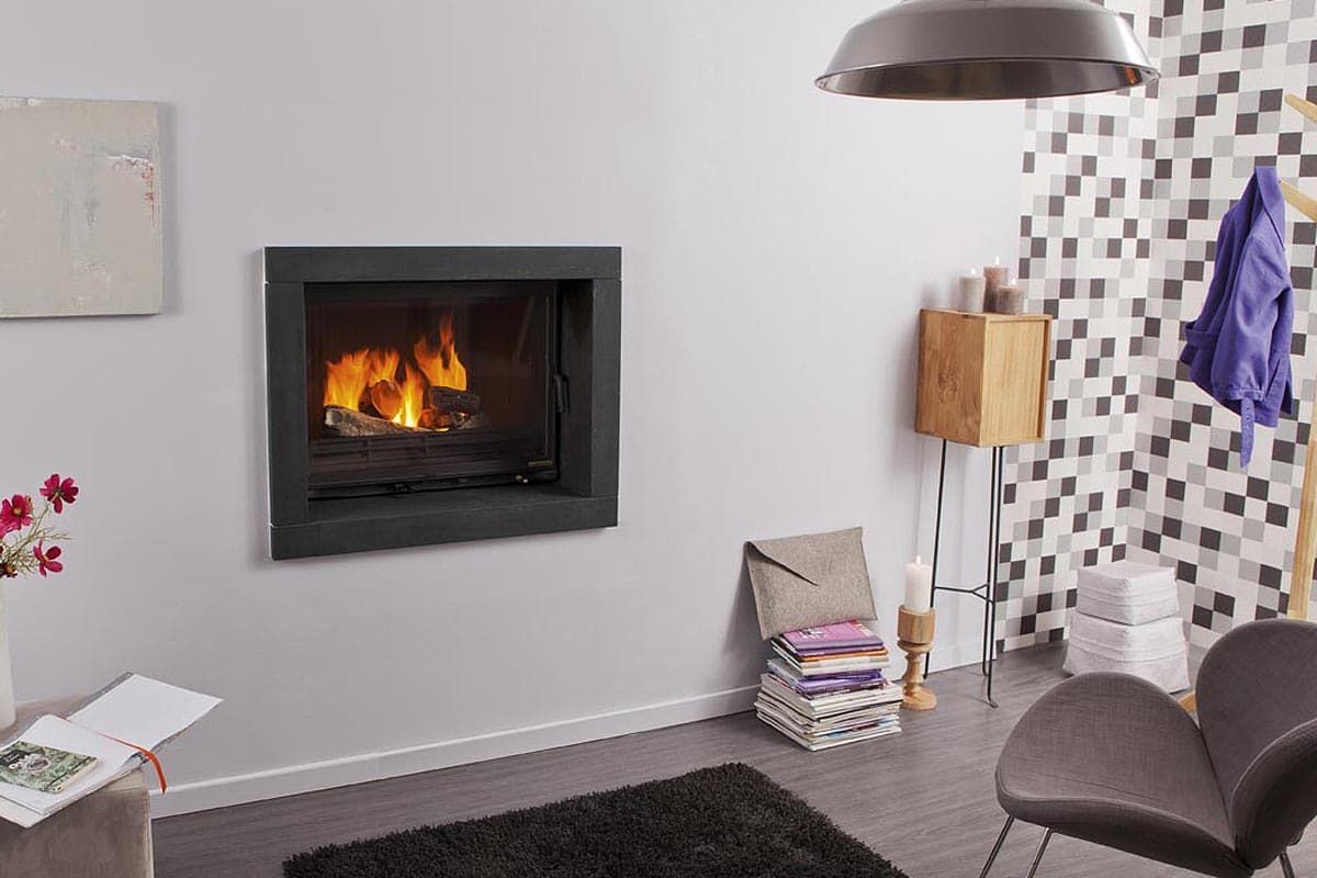 Облицовка Cheminée BADALONA - это современное каминное оформление из синего камня отлично подходит для чугунных топок Cheminees Philippe 600, 747, 777.