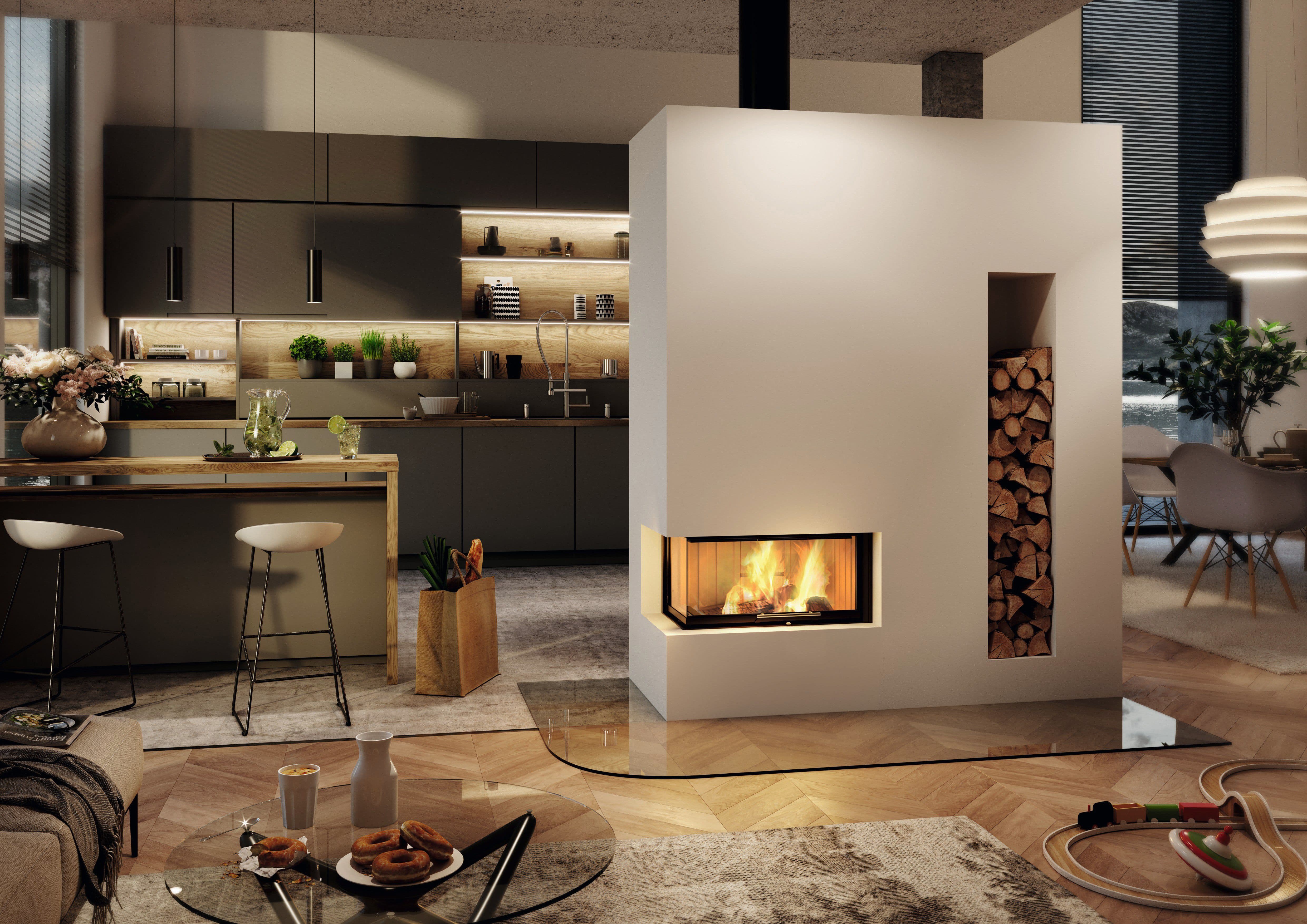 Каминная топка Spartherm Varia AS-2Lh / AS-2Rh с угловым стеклом обладает не только поразительным дизайном, но также соответствует и распространенному представлению о немецком качестве. Всё в этой топке – от технической до эстетической стороны – соответствует требованиям к продукции премиум-класса. Камин оснащен бесшумным механизмом подъема дверцы, обеспечивающим полную герметичность топочной камеры, а также системой "чистое стекло" и полностью регулируемой системой вторичного дожига, позволяющей достигать высоких показателей теплоотдачи.