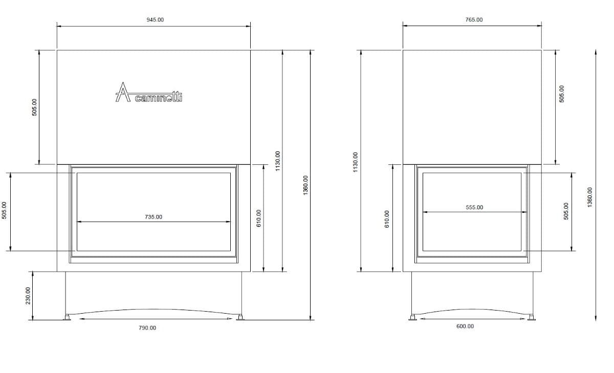 Габаритные размеры A.caminetti CRYSTAL 4D