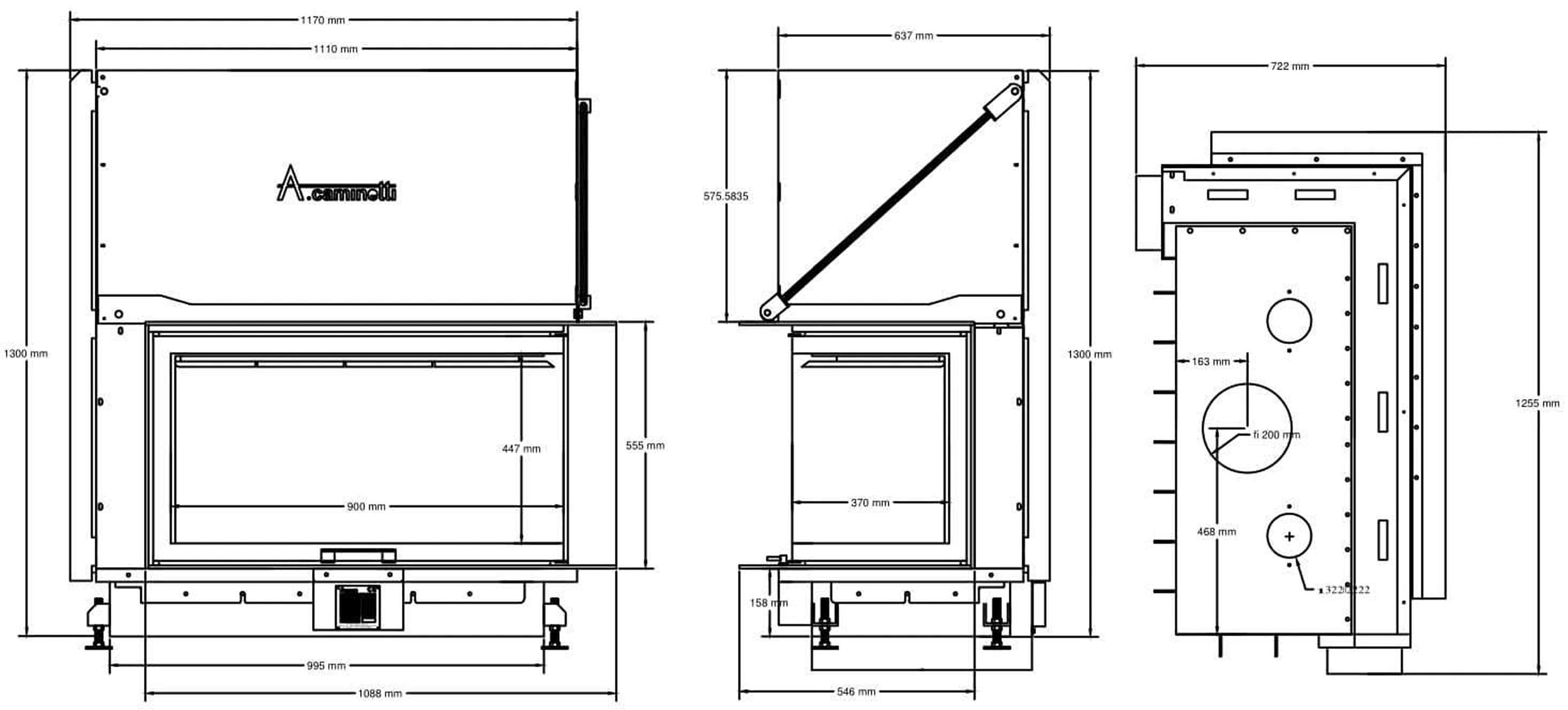 Каминная топка A.caminetti QUATTRO 100 R - угловая каминная топка итальянской компании A.caminetti. Топка изготовлена из холоднокатаной стали марки DC01 (3 мм) с финишным огнепрочным покрытием, гарантирующее надежное и безопасное использование не один десяток лет. Представленная модель оборудована подъемной стальной дверцей из специального профиля, что обеспечивает жесткость и долговечность. Термостойкая стеклокерамика, установленная на двери, прекрасно выдерживает температуру до 800°C без деформаций и трещин.