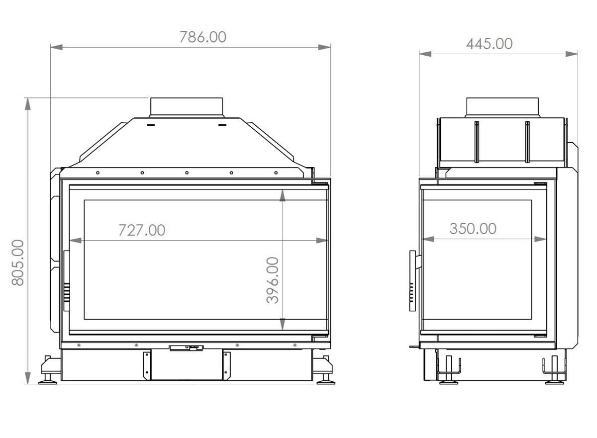 Габаритные размеры A.caminetti QUATTRO 70 R OPEN SIDE