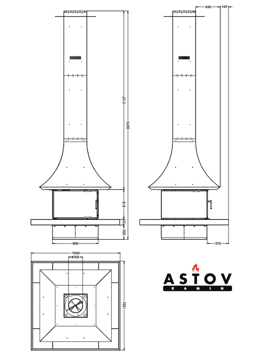 | Диаметр дымохода | 250 мм |