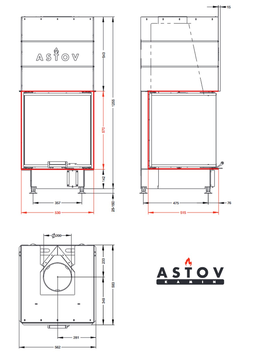 Трехсторонняя каминная топка АСТОВ П3С 5357