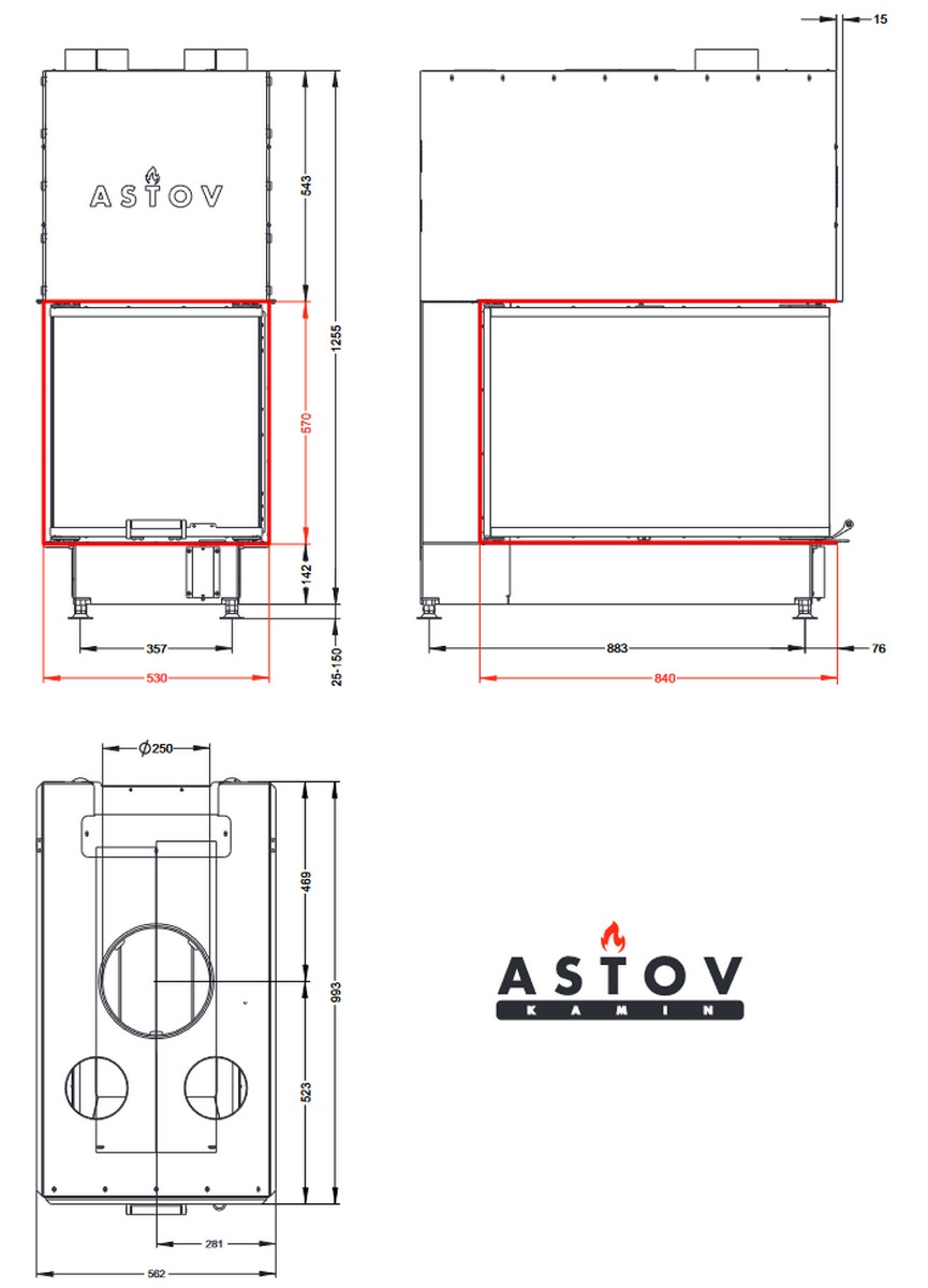 Трехсторонняя каминная топка АСТОВ П3С 53(84)57